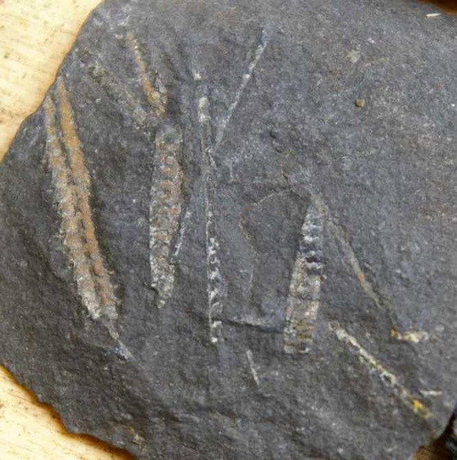 Nun zu den Bildern. Die Einschlüsse sind max. 3 cm lang. Beim Stöbern im Lexikon bin auf Graptolithen gestoßen, liege ich da richtig?