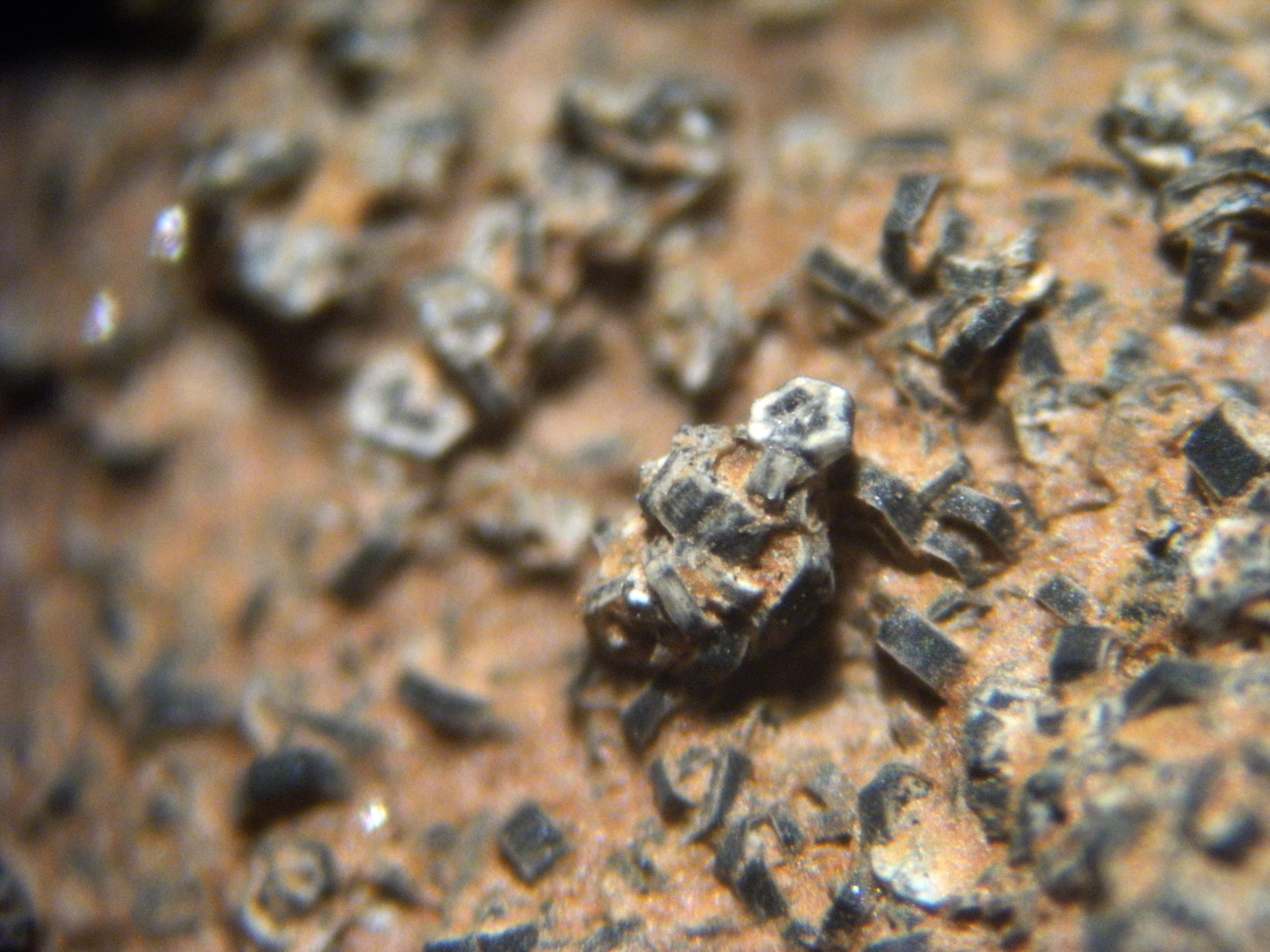 ich hatte bisher nur Synchisite mit den typischen fleischfarben bis hellbraunen Farbtönen gefunden und hatte auch erst an eine Verwitterung gedacht, aber das mehrere nahezu identisch verwittert sind, war meiner Meinung nach recht unwahrscheinlich. Ich bekam dann von einigen Sammlerkollegen den Hinweis auf Phabdophan. Diese sollen im Petersberg pseudomorph nach Synchisit auftreten und meistens in sehr dunklen aber auch helleren bis milchigen Farbtönen vorkommen. Ich hab gestern noch in einer Stufe einem winzigen hexagonalen weißen xx gefunden, bin mir bei diesem aber noch nicht sicher. Im Netz fand ich dann bei Mindat diese Bilder unter http://www.mindat.org/gallery.php?loc=21711&min=3397.