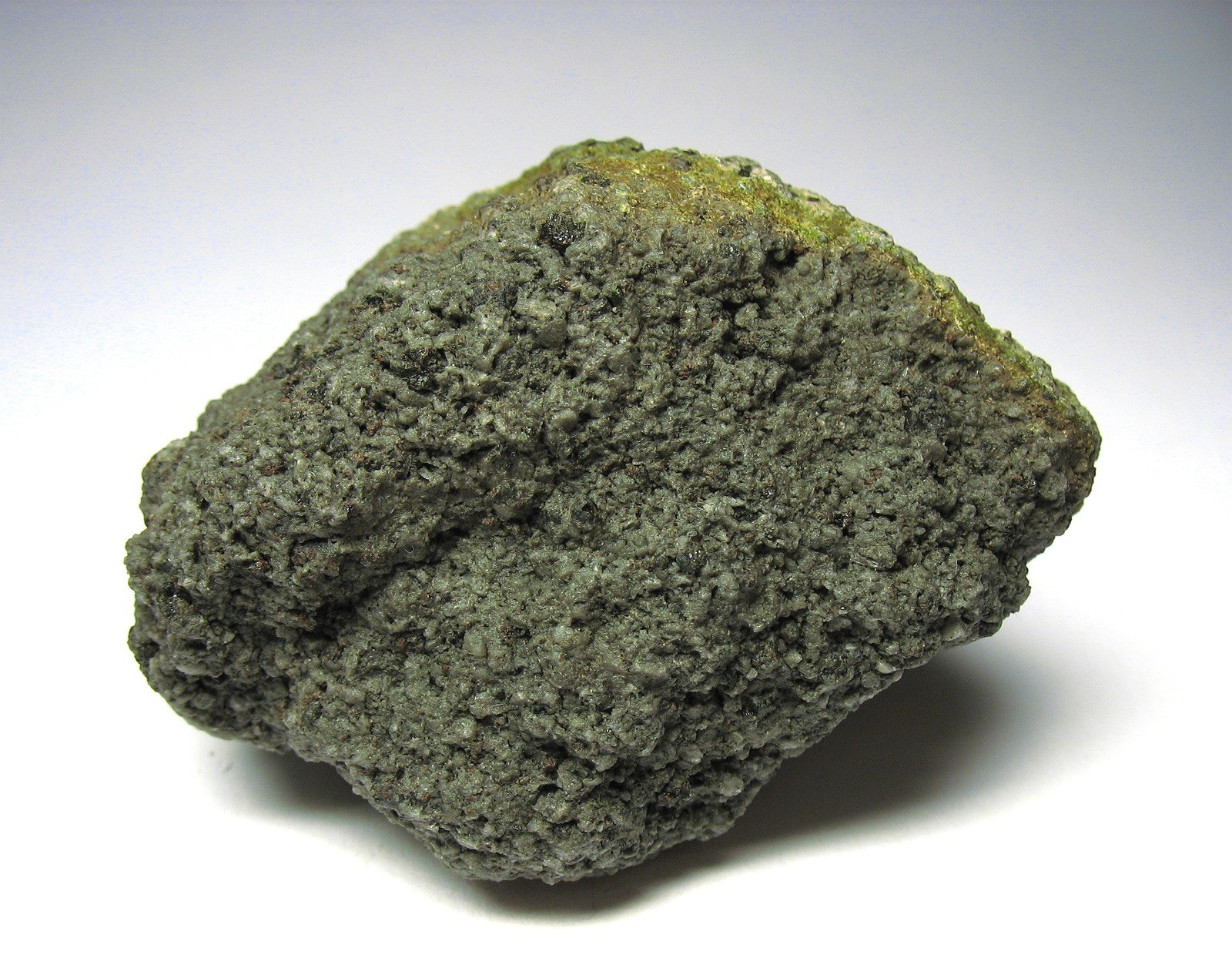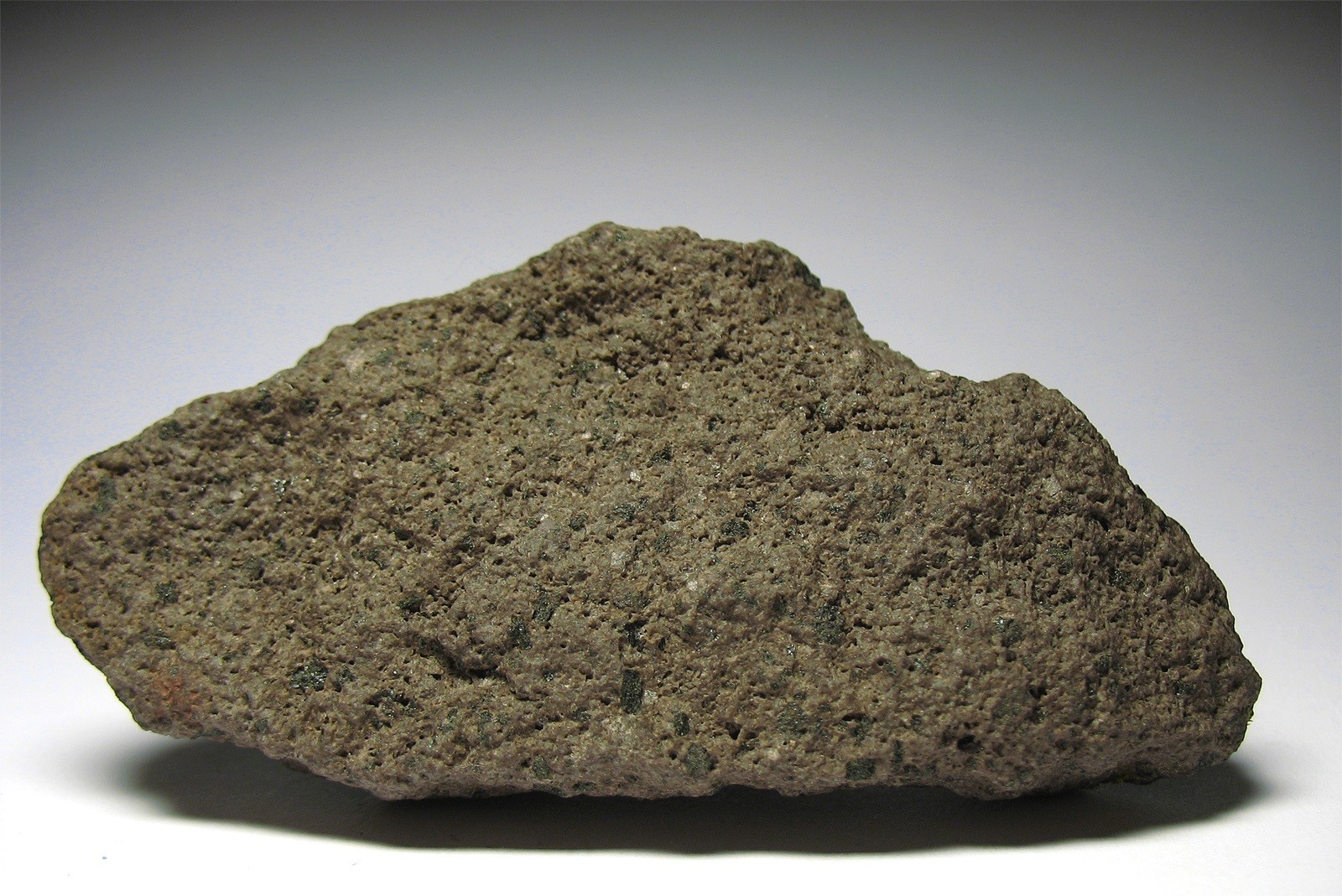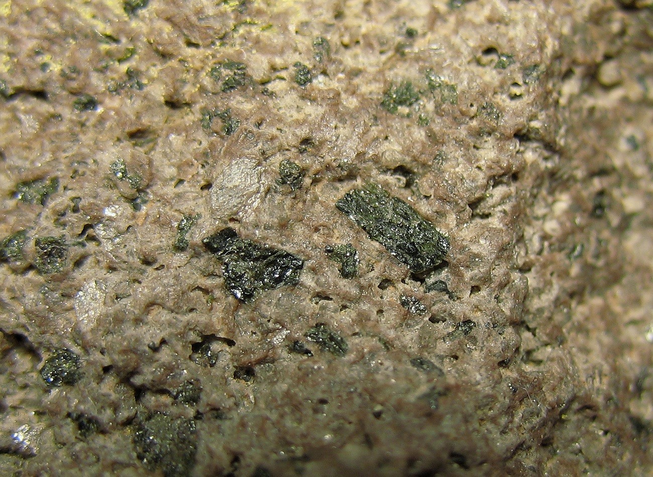 Ich kenne mich mit Gesteinen nicht gut aus, weiß aber, dass in vulkanischen Gesteinen oftmals Augit oder Pyroxene vorkommen. Könnte das in Frage kommen?