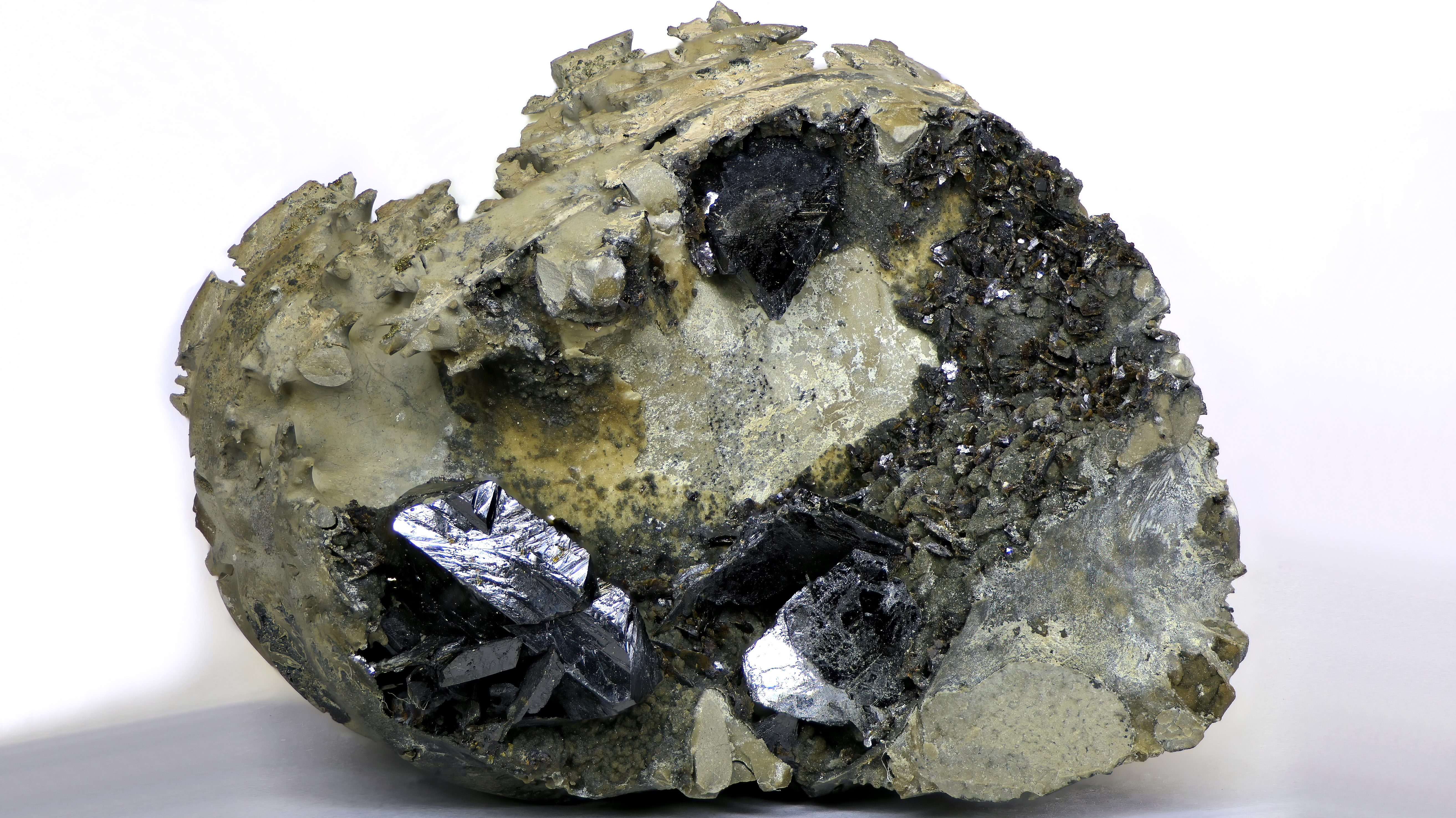 Auf dem Titel war ein perfekter Bleiglanzwürfel aus einer Karstschlotte in Bleiwäsche (?) drauf, und auf diesem saß eine kleine, ebenso perfekt ausgebildete Schnecke in Kupferkieserhaltung.