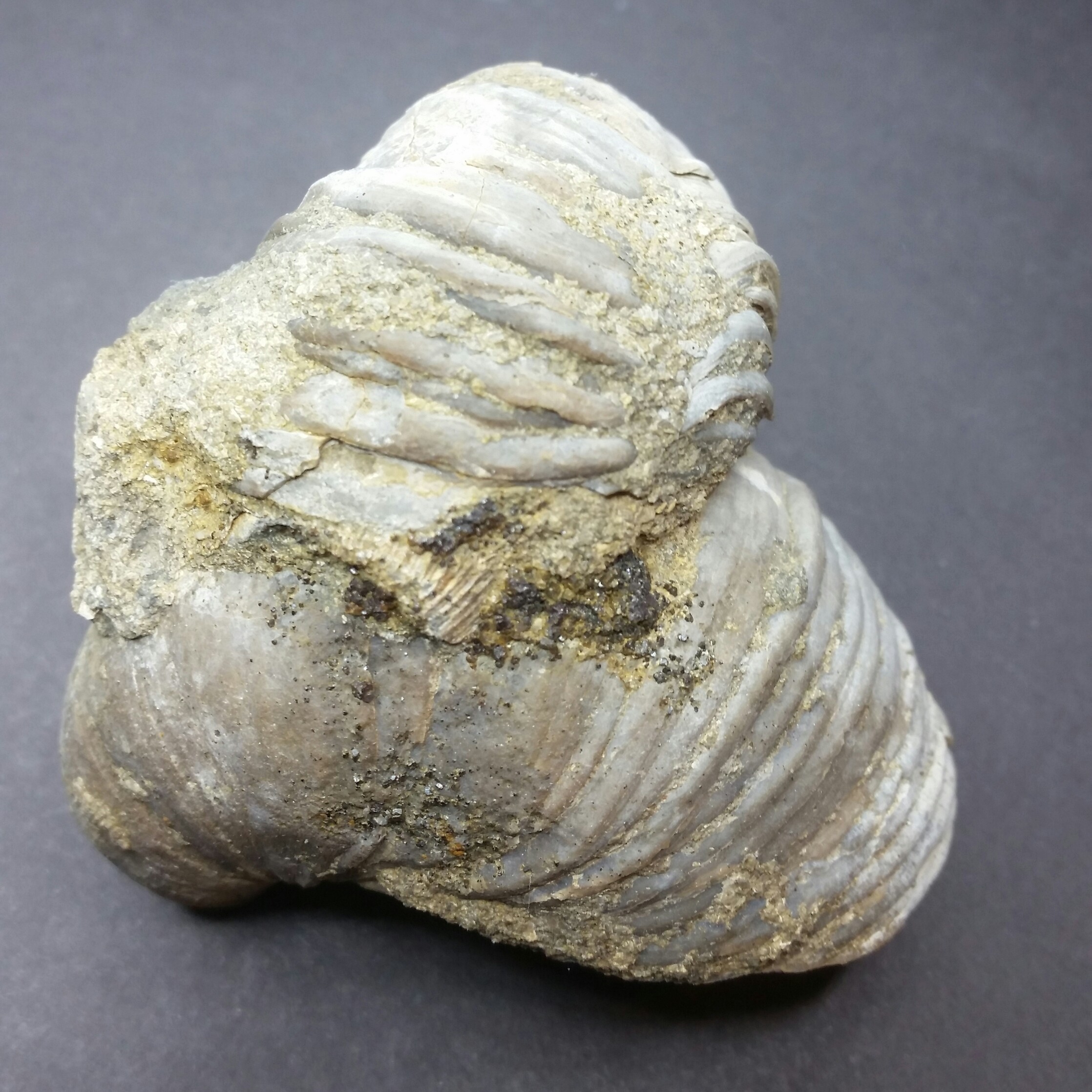 Ich habe auch einige Ammoniten (4 und 6 cm) und einen Belemnit (Durchmesser Oval: 8 cm), in denen sich Calzite gebildet haben. Interessant finde ich auch diesen kleinen Zweig, um den sich das Mineral gebildet hat. Er ist zwar nicht so alt wie manch ein Fossil, allerdings muss er auch schon ein paar Jahre auf dem Buckel haben.