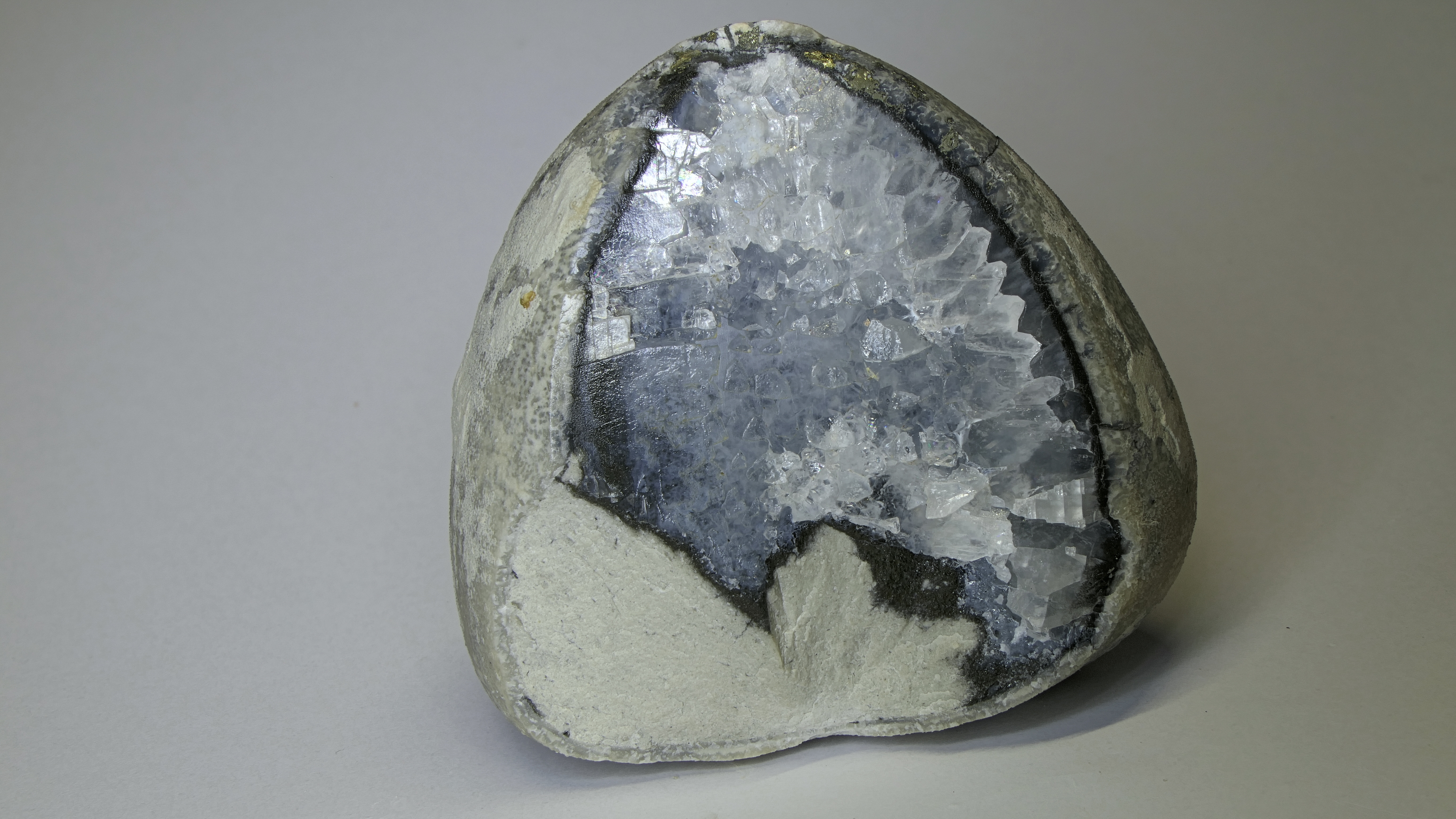 in der aufgebrochenen Kammer rechts ist schön die Auskleidung mit Calcit-xx zu sehen.