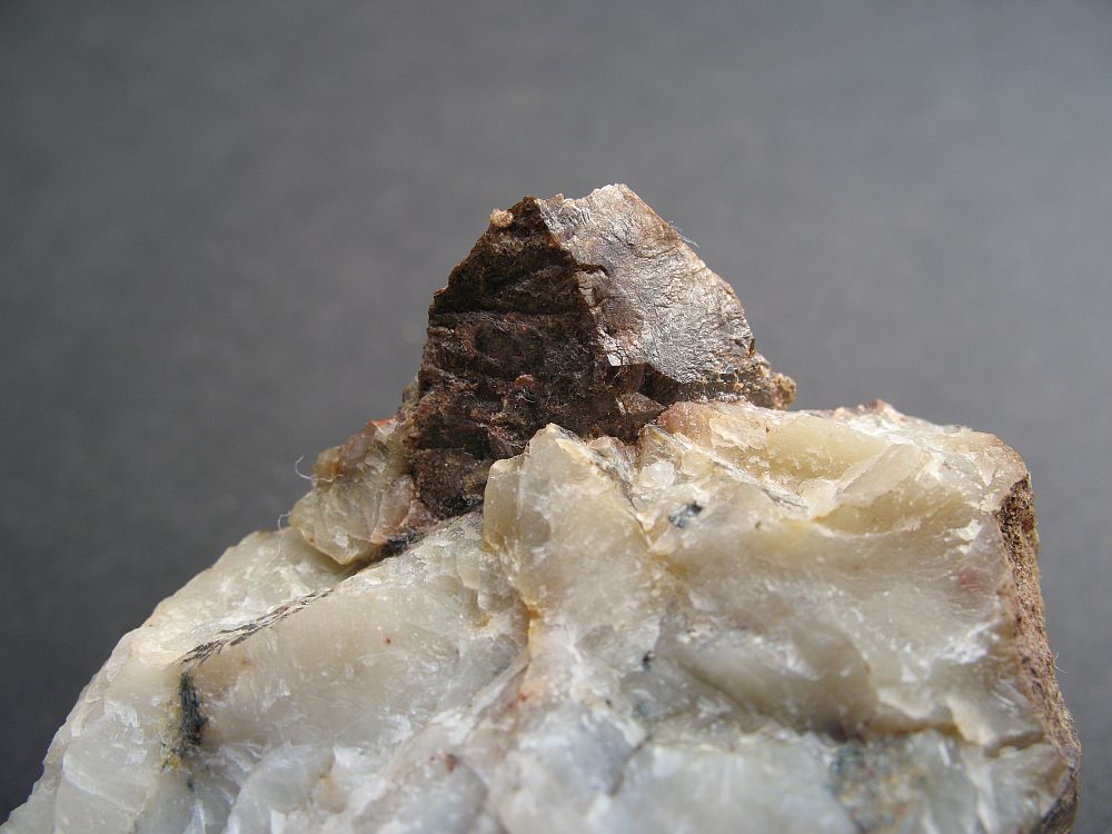 Es gibt etwas unterhalb die Reste eines kleinen alten Bruchs; dort stand ein Pegmatit an, der war partiell regelrecht gespickt mit großen Titaniten. Die ließen sich allerdings nur ganz schwer komplett bergen. Im Anhang ist ein leider schlechtes Bild eines solchen Kristalls von dort. Die Hälfte, die aus der Matrix schaut, ist annähernd 2cm groß. Ist mir leider beim Versuch ihn weiter frei zu legen völlig zersplittert