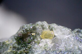 ich habe auf einer Stufe aus dem Steinbruch Oßling (aus den frühen 90ern) einen Kristall entdeckt, welchen ich bisher nicht zuordnen konnte. Begleitmineralien sind Titanit, Chamosit und Quarz. BB beträgt ca. 6mm.