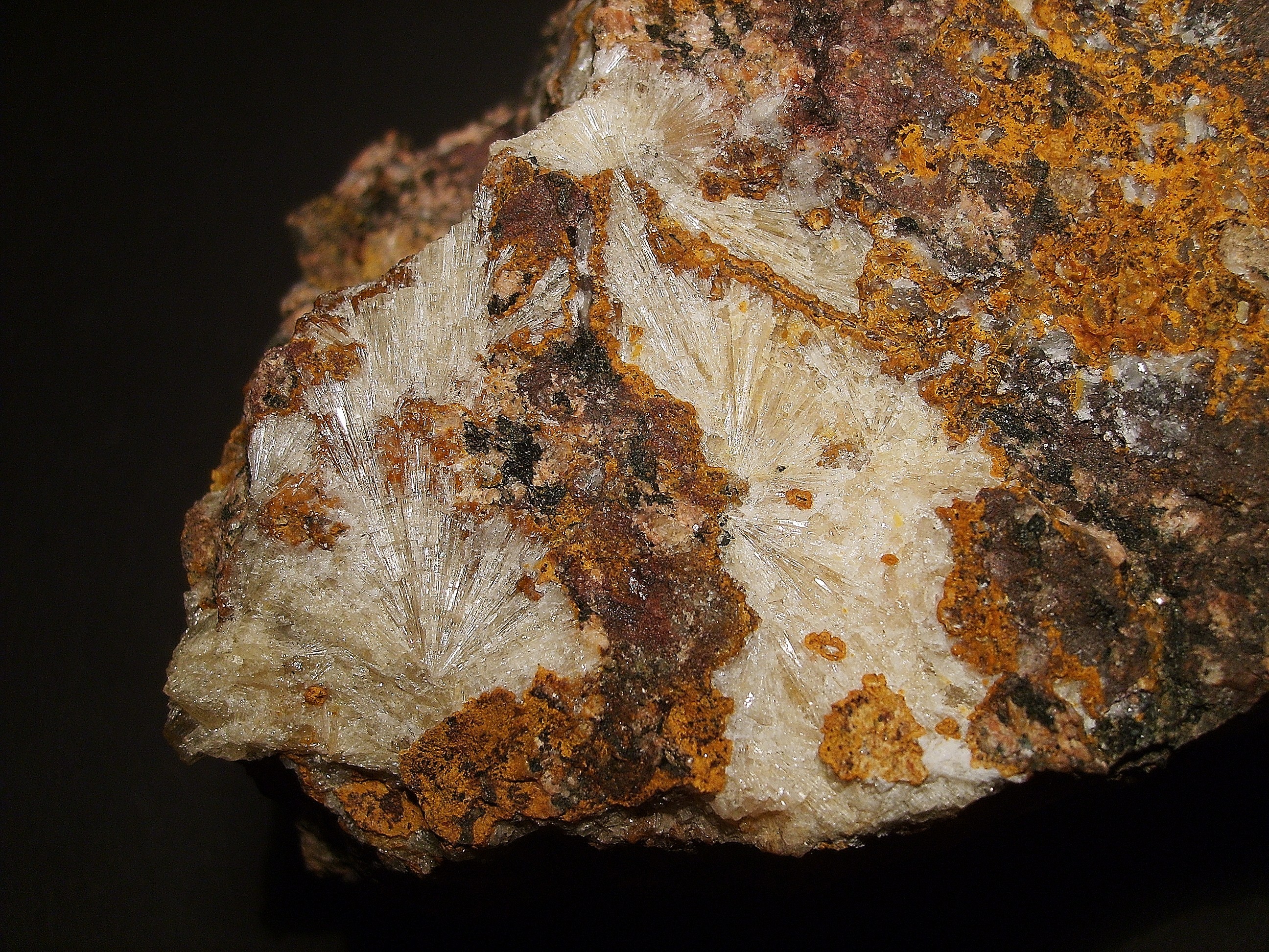 Steinfried 2: Aragonit strahlig auf Kluftfläche vom Lösnitzgrund/Radebeul bei Dresden/Sachsen