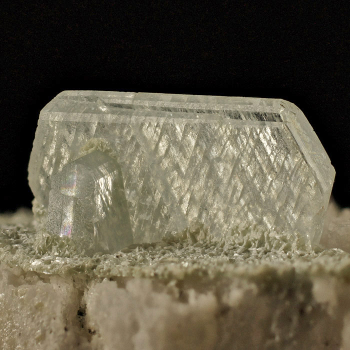 Ich habe die Info, dass es sich um Apatit handelt von einem befreundeten Sammler bekommen. Er war sich seiner Sache recht sicher.