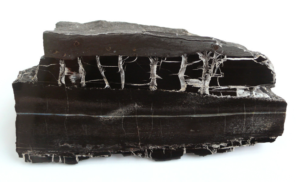 hier mal ein Stück aus Dormettingen / Dotternhausen, das ebenfalls im Inneren mineralisiert ist, und nur außen in Gagat umgewandelt (leider kein Baumstamm  ;) ):