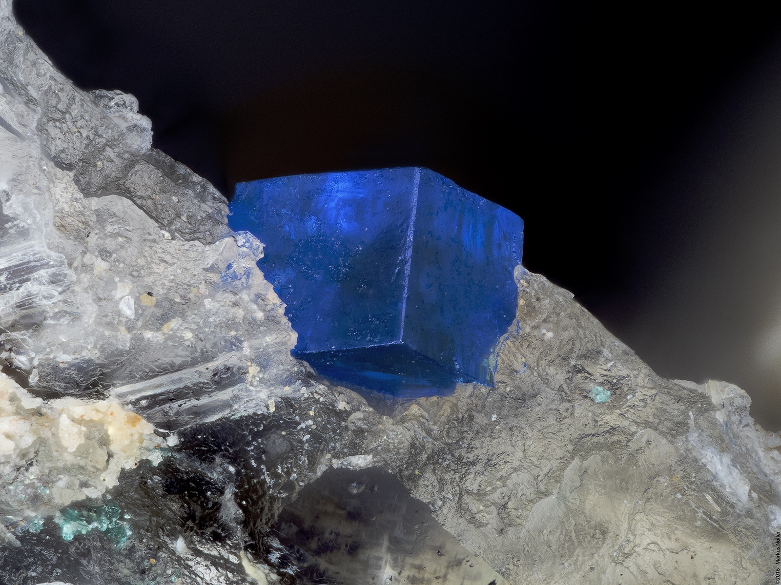 Linarit xx aus Bastenberg/Ramsbeck/NRW. Die Bildbreite beträgt ca. 1,6mm mit dem 10er Mitu: