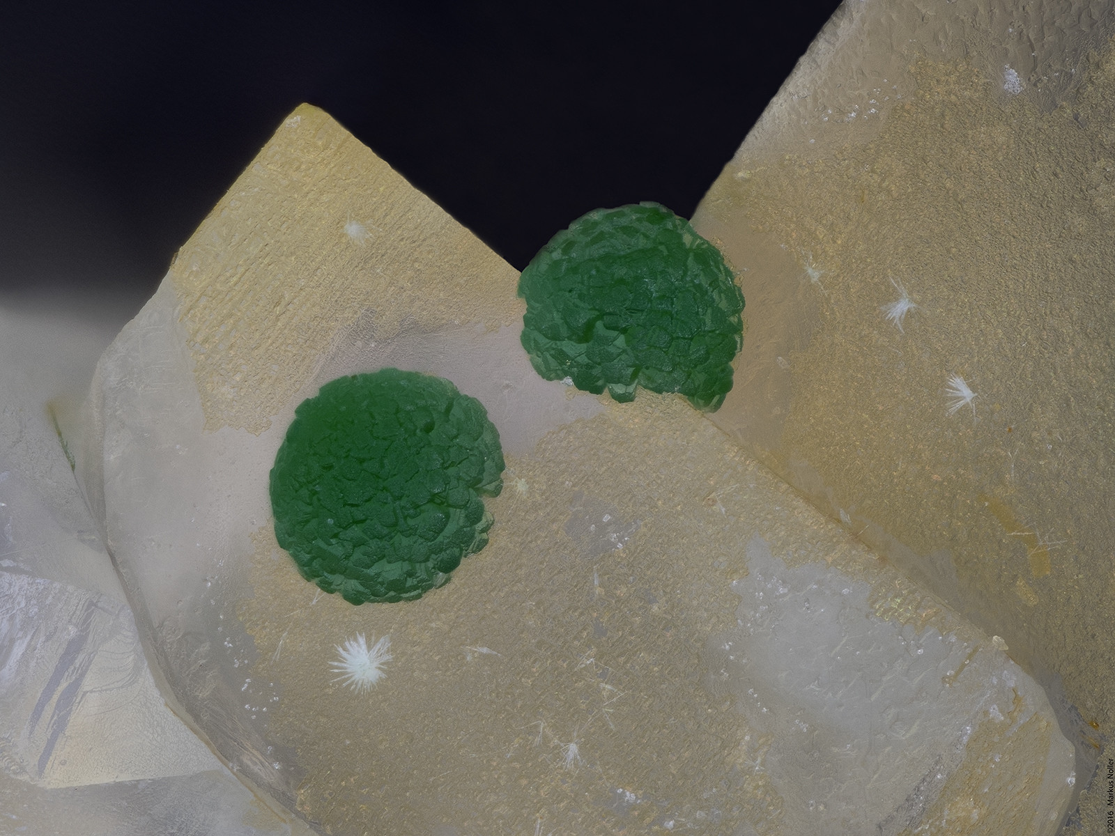 Cabrerit xx aus Lavrion/Griechenland. Die Bildbreite beträgt ca. 8mm mit dem 2er Mitu.
