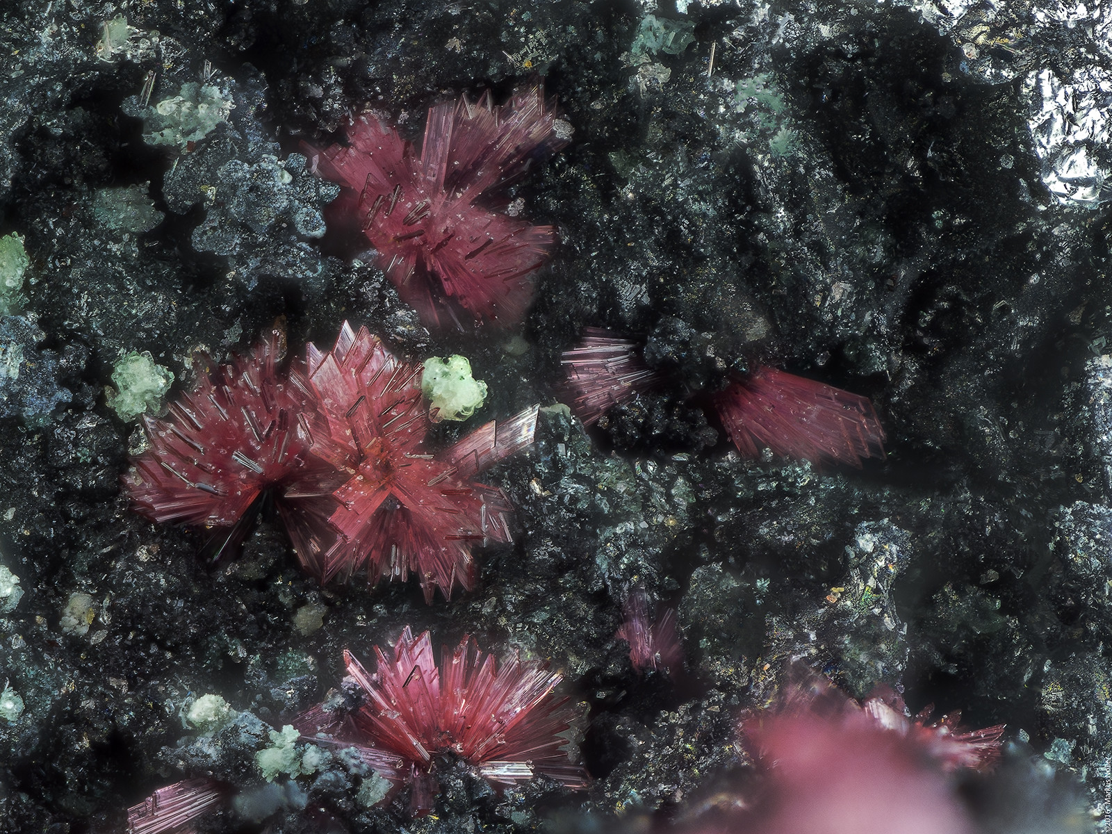 und nun einen kurzen Abstecher zur Schmiedestollenhalde/Wittichen mit Erythrin xx aus Reinhards Sammlung. Die Bildbreite beträgt ca. 1,6mm mit dem 10er Mitu: