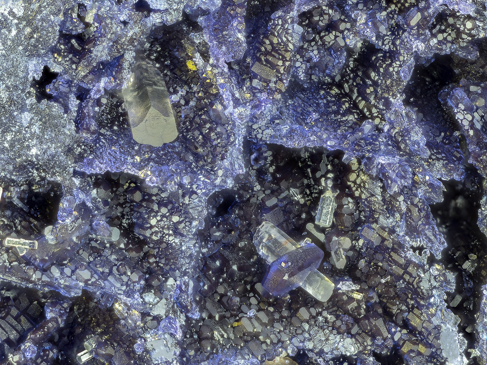 Uraninit xx Pseudomorphose nach Ianthinit xx und Phosphuranylit xx aus der Grube Brunhilde/Schwarzwald. Die Bildbreite beträgt ca. 3,2mm mit dem 5er Mitu. Das war bisher eine meiner schwierigsten Stufen zum fotografieren! Irgend ein Kristall hat immer reflektiert. Das ist glaube ich der fünfte Anlauf...  :P