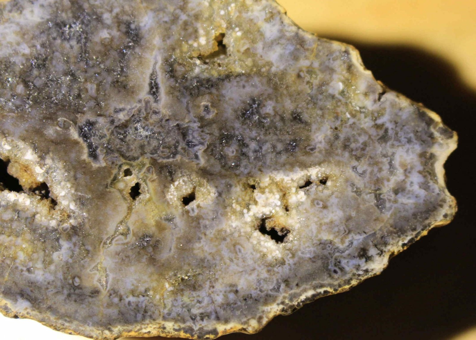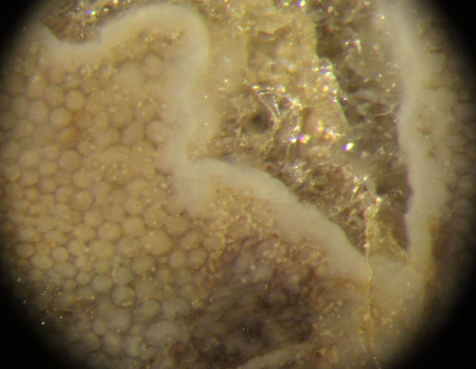 Anbei zeige ich mal zwei Bilder: Detailfotos aus bestimmten Bereichen einer Pietzschia schulleri . Dieser einmalige Fund wurde von Bernd bei Ebay erworben und stammt mit hoher Wahrscheinlichkeit aus der Umgebung von Bamberg, ebenfalls Mainschotter.