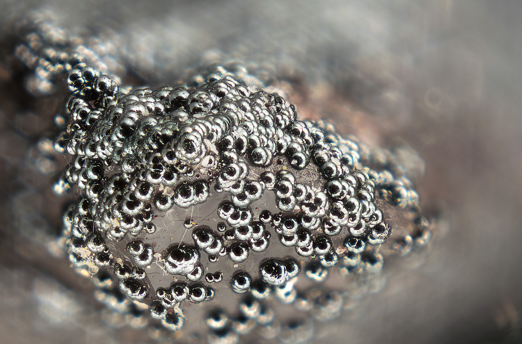 Die farbig-angelaufene Kugeln könnten Hematit sein. Hematit zeigt oft sehr bunte Anlauffarbe. Was ist ihre Strichfarbe?