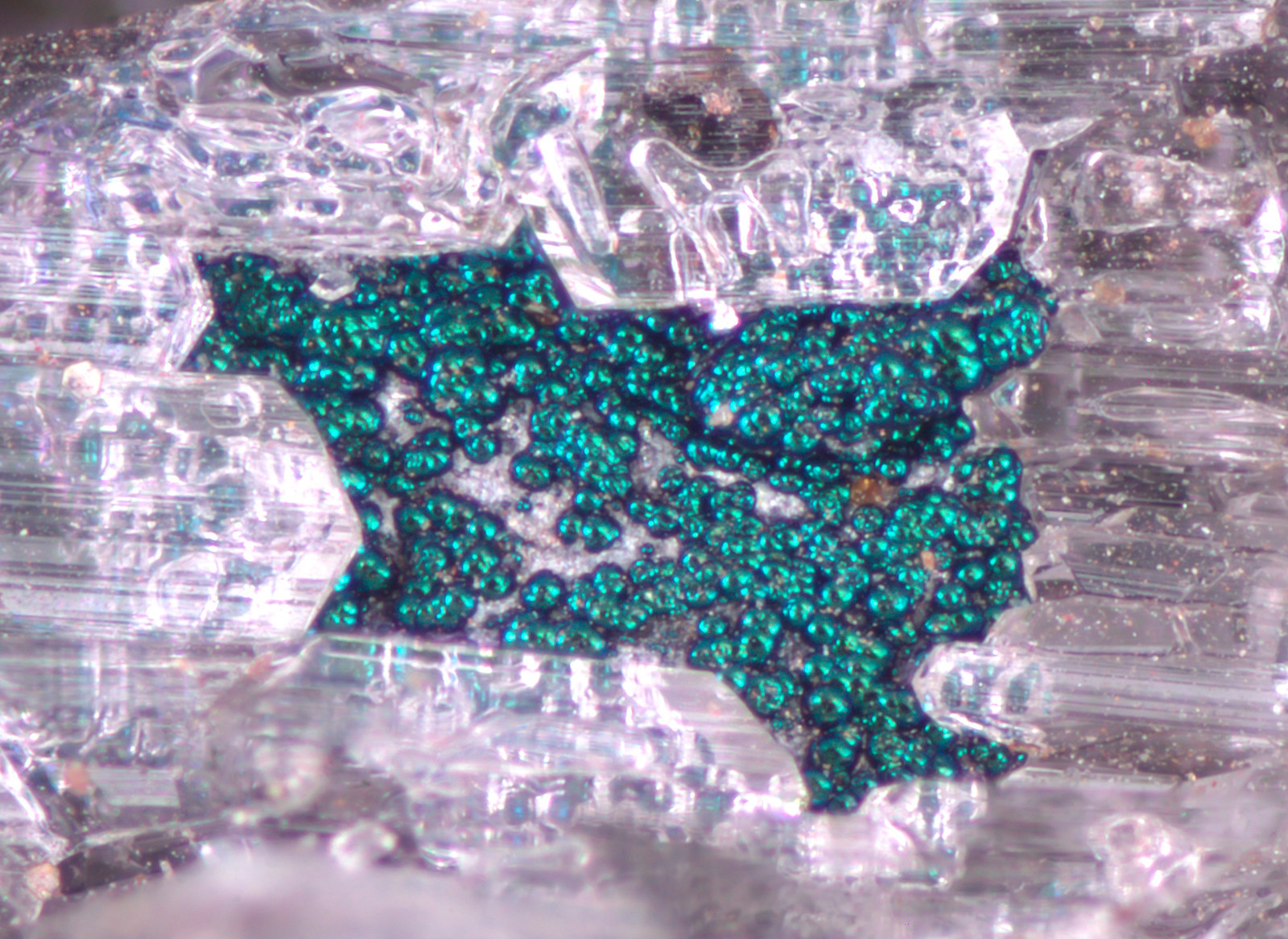 Die farbigen Kügelchen ... sind das dieselben (z.B. von der Grösse), wie diejenigen, die sich direkt neben dem Jarosit befinden? Wenn ja, ist es dann nicht eher Hämatit mit Anlauffarben als Goethit oder Limonit?