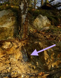 ...  Birke im steilen Felshang auf Fluoritgang