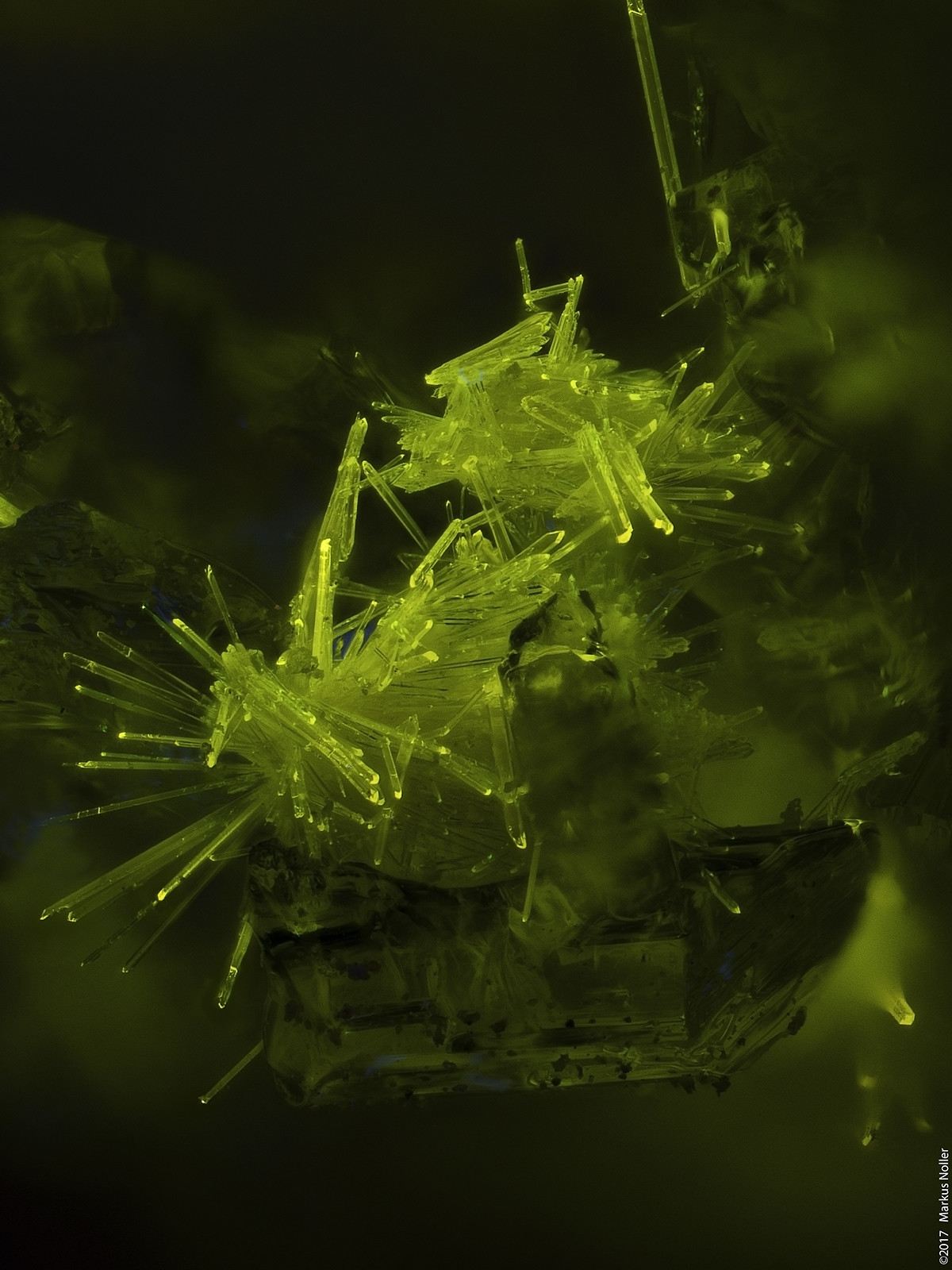 Das UV-Foto vom griechischen Sklodowskit ist echt beeindruckend.