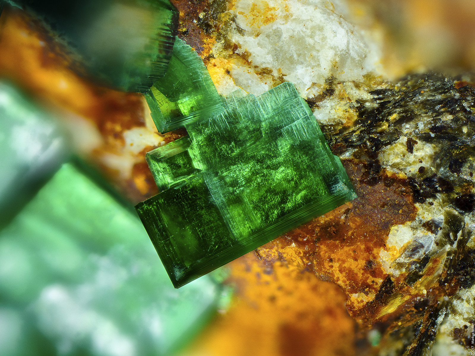 Torbernit xx aus der Grube Höhenstein/Poppenreuth. Den FO kann ich nicht im Atlas finden. Habe ich da was übersehen? Ex H. Bültemann Sammlung. Die Bildbreite beträgt ca. 3,2mm mit dem 5er Mitu: