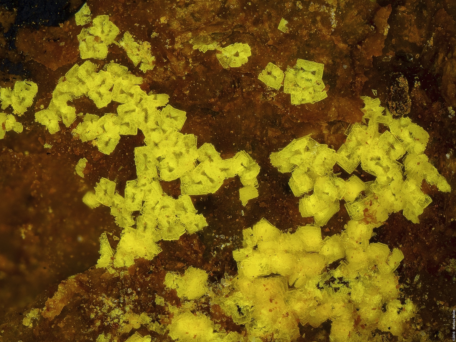 Autunit/Bassetit xx Mischkristalle vom Schurf20/21/Schneckenstein/Vogtland. Die haben eine echt interessante Form! EDX analysiert. Die Bildbreite beträgt ca. 1,6mm mit dem 10er Mitu: