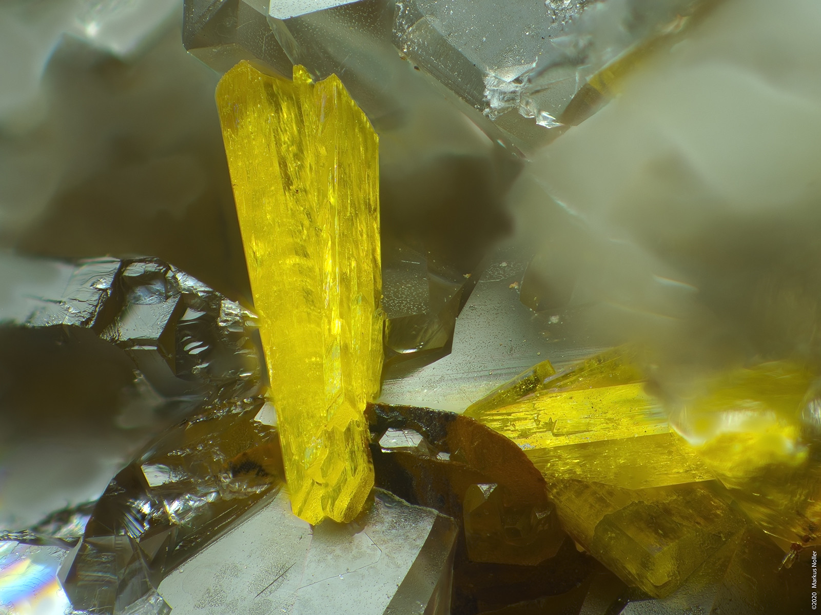 Anatas xx von der Schmiedestollenhalde/Wittichen, auch vom 07.11.2020, auch wenn es kein Uranmineral ist. In diesem Fall ist er auf der Stufe mit Uraninit/Coffinit und anderen nicht weiter bestimmten, derben Uranmineralien vergesellschaftet.