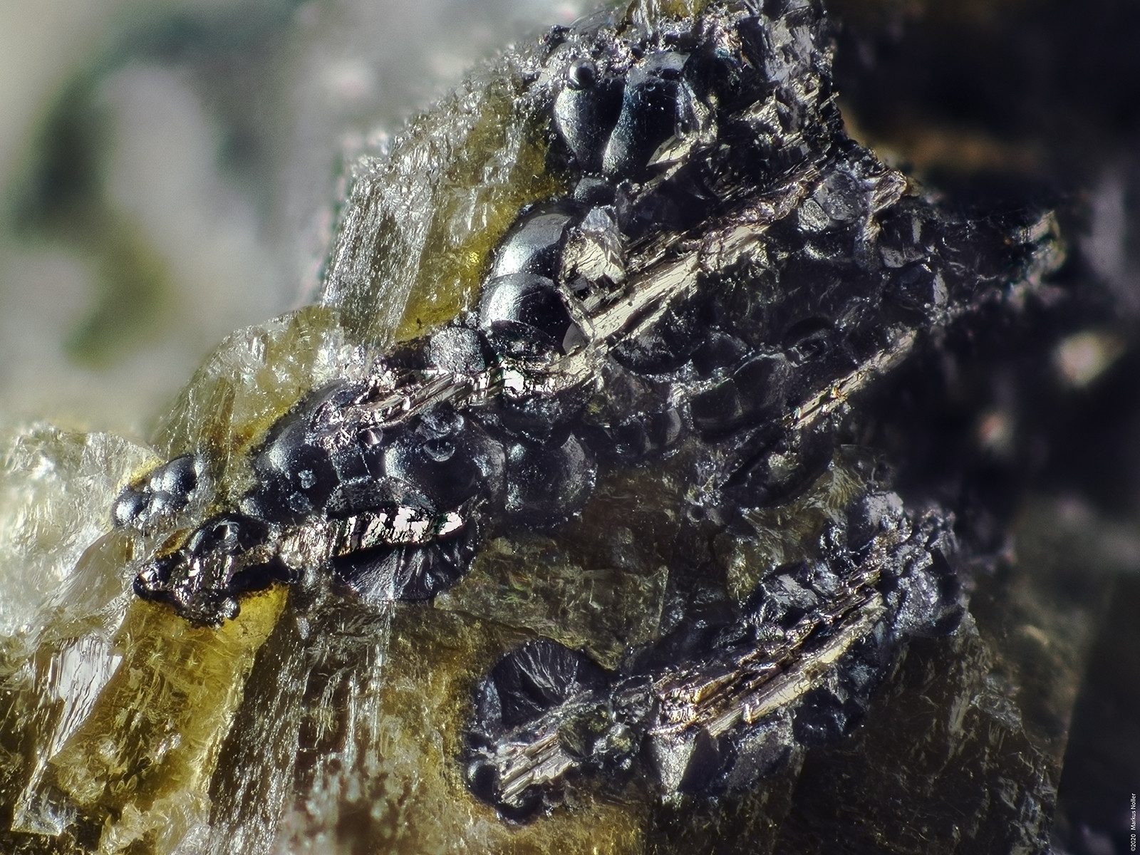 anbei noch eine Detailaufnahme von ged. Wismut Gängen, welche von Uraninit umrandet sind und von diesem zum Nebengestein hin abgegrenzt werden. Wie ich finde eine interessante Paragenese von der Grube Sophia/Wittichen...