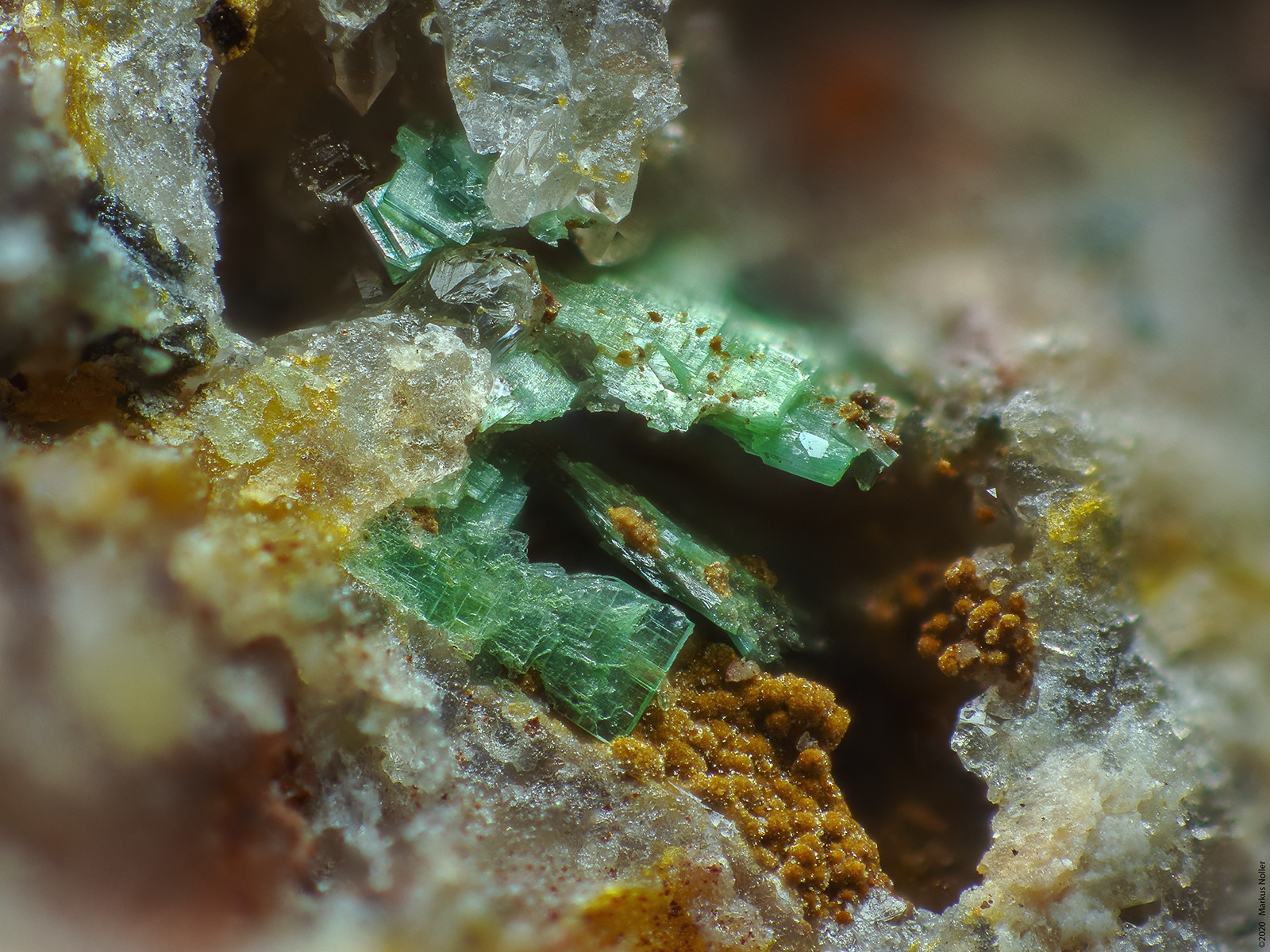 und hier noch eine Detailaufnahme von (Meta-)Zeunerit xx mit Arseniosiderit xx von meinem Besuch auf der Schmiedestollenhalde/Wittichen am 03.10.2020...