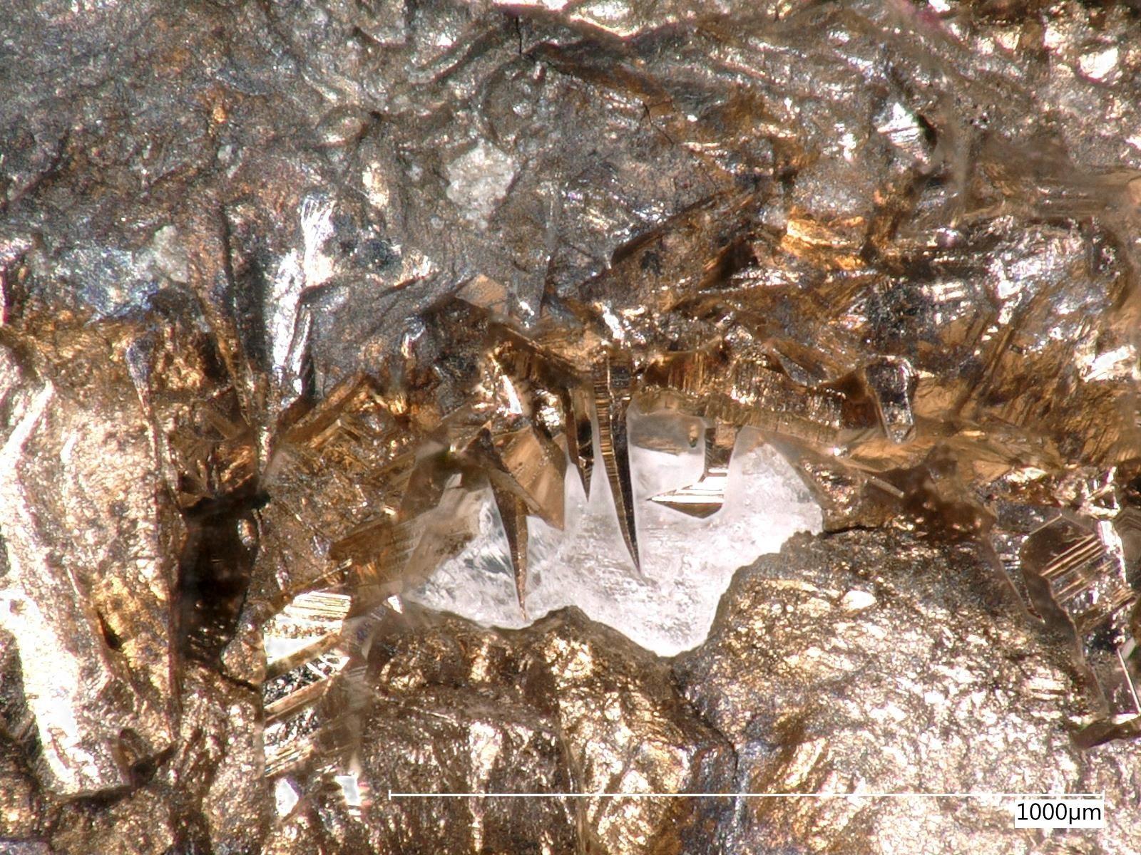 Also bei dermaßen verzerrten Kristallen wäre ich schon SEHR vorsichtig, nach der "Kristallform" zu bestimmen. Meine Maucherite sehen anders aus, sind allerdings auch von der TL. Auf jeden Fall ein dickes Fragezeichen dran schreiben! Es schein außerdem so zu sein, das diese "Druse" einmal mit einem anderen Mineral (Clacit ?) gefüllt war. Hier besteht die Möglichkeit, das dieses andere Mineral dem Nickelin in abweichende Formen gezwungen hat, etwa indem ein Nickelinkristall gegen eine (oder mehrere) Calcitkristallfläche(n) gewachsen ist. Ohne Analyse würde ich mich nicht soweit aus dem Fenster lehnen wollen und da Maucherit dran schreiben.