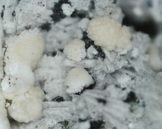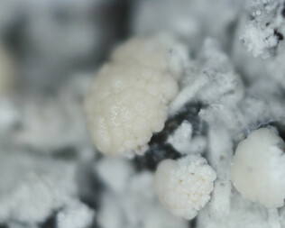 Blumenkohlförmige Kristalle mit blaßbräunlichen Überzügen.