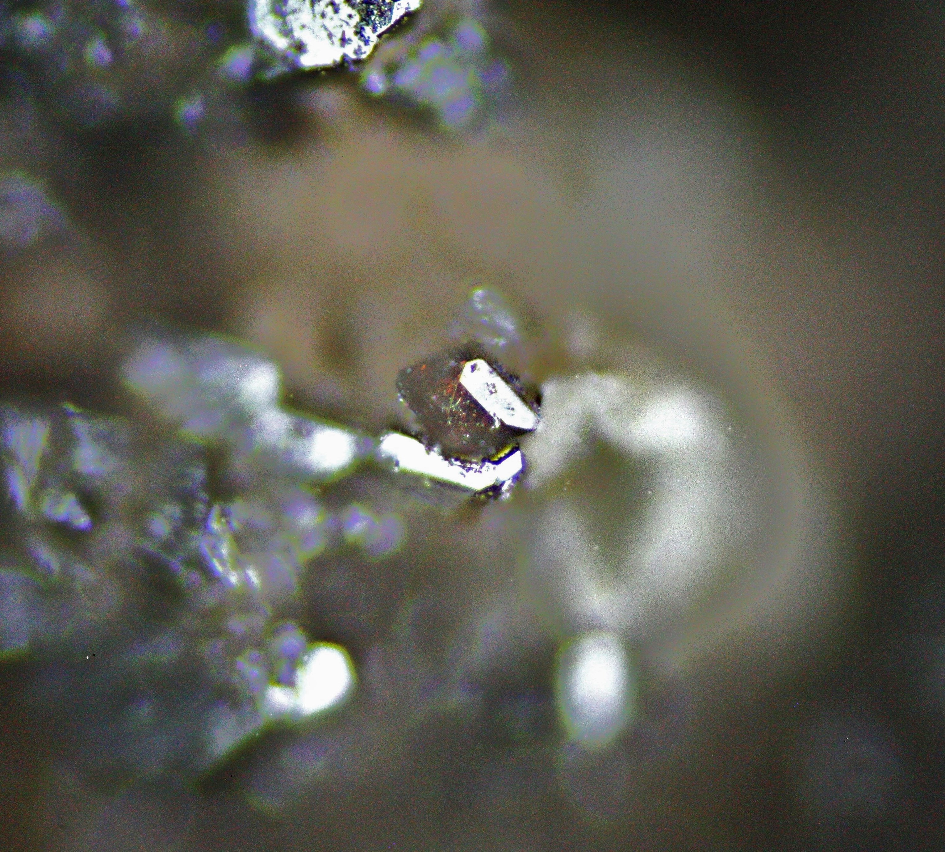 Zum Vergleich ein EDX-analysierter Pyrobelonit (typisch für P. sind pseudokubische Rhomboeder mit dreieckigen Basisflächen - Zudem kommt Pyrobelonit eigentlich immer orientiert auf Brackebuschit aufgewachsen vor):