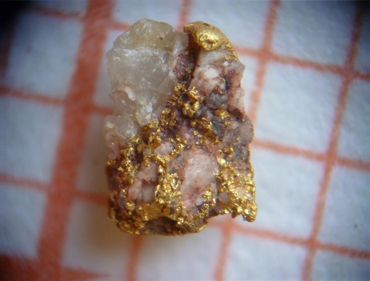 in einem durchwürfelten Holzkoffer mit historischen KS ca. 1897 bis 1920 befand sich eine kleine Quarzstufe, überzogen mit einer dunklen, brüchigen Kruste und gelbglänzenden Nestern. Bei genauerer Betrachtung stellten sich die Nester als Gold heraus.Da die dunkle Kruste brüchig war und schon beim in die Hand nehmen teilweise zerbröselte, habe ich vorsichtig mit einem Zahnstocher die Kruste weiter entfernt. Zum Vorschein kamen nach gut einer halben Stunde ein grosses und ein kleines Goldnest. Soweit Juhu !