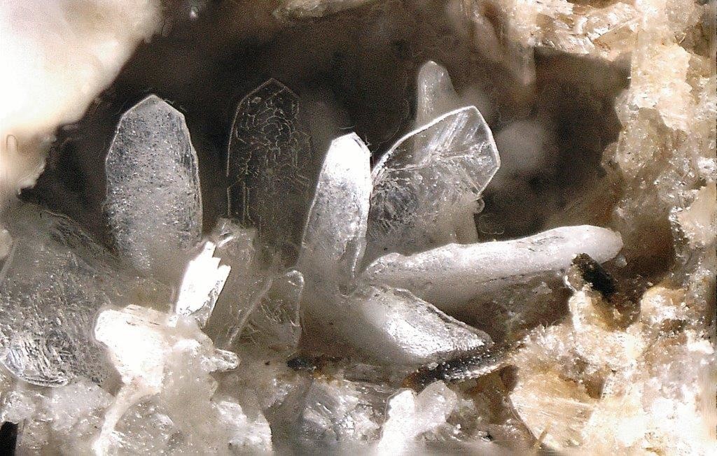 das Foto zeigt zweifelsfrei Tridymit (evtl. Verwachsung Tridymit/Cristobalit)!