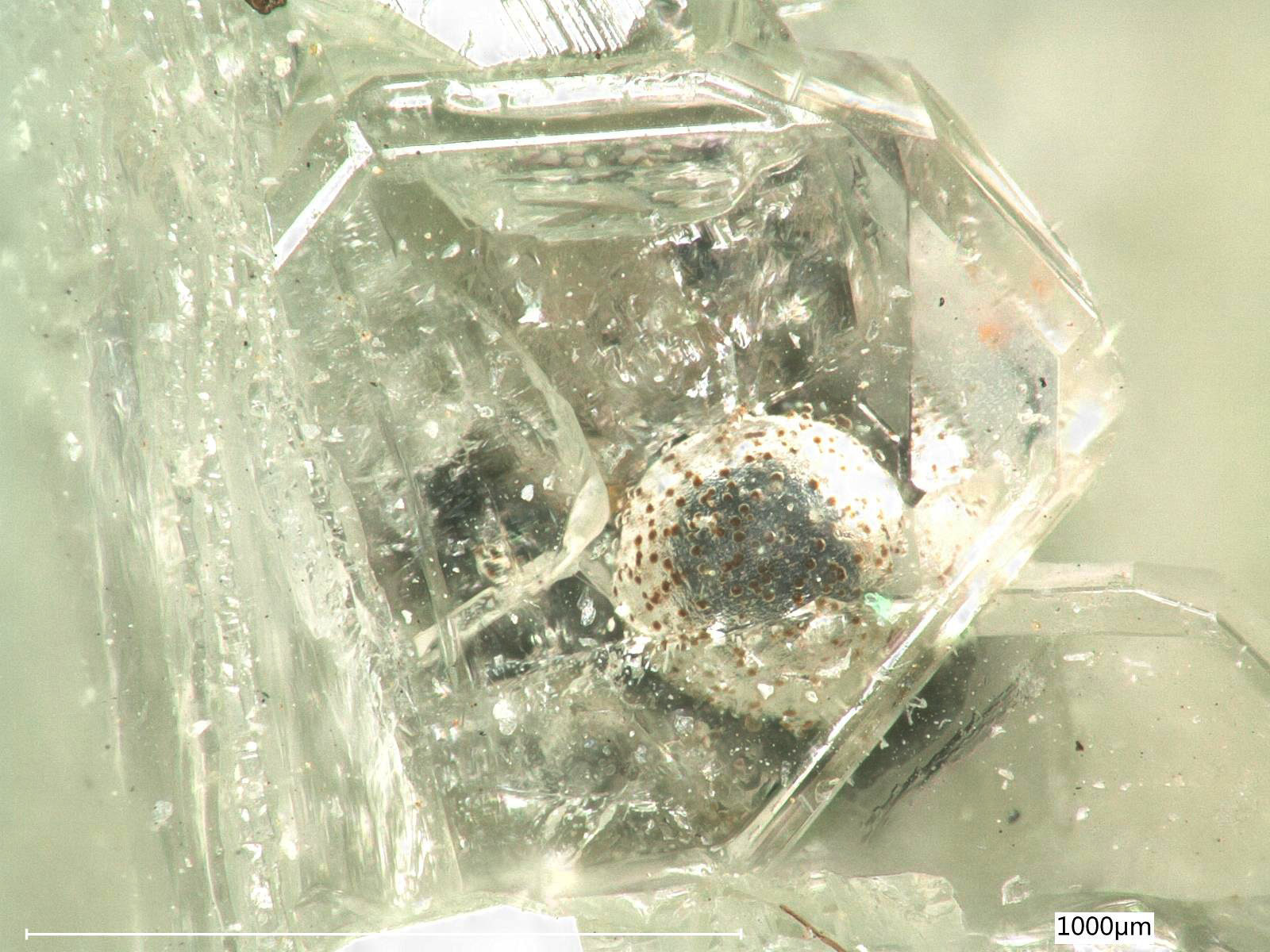 Foto 1:  Vulkanisches Glas auf Pyroxen, Nickenicher Sattel,  BB 2,4 mm