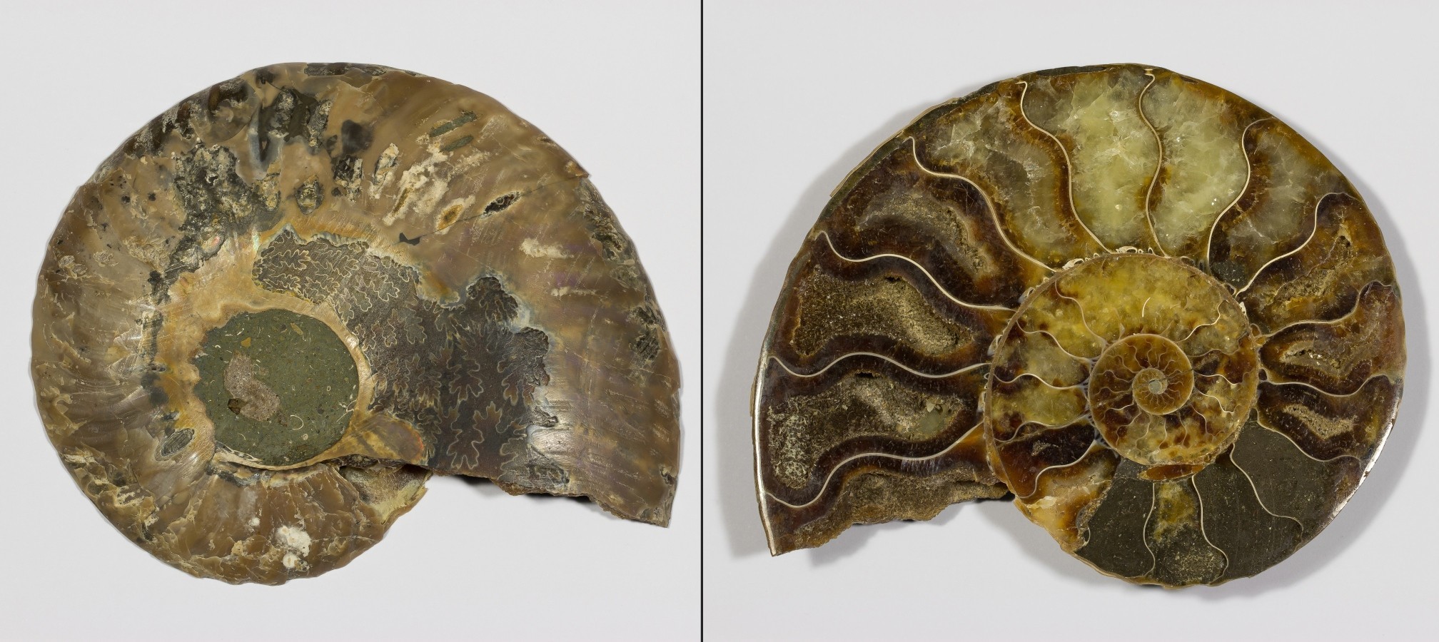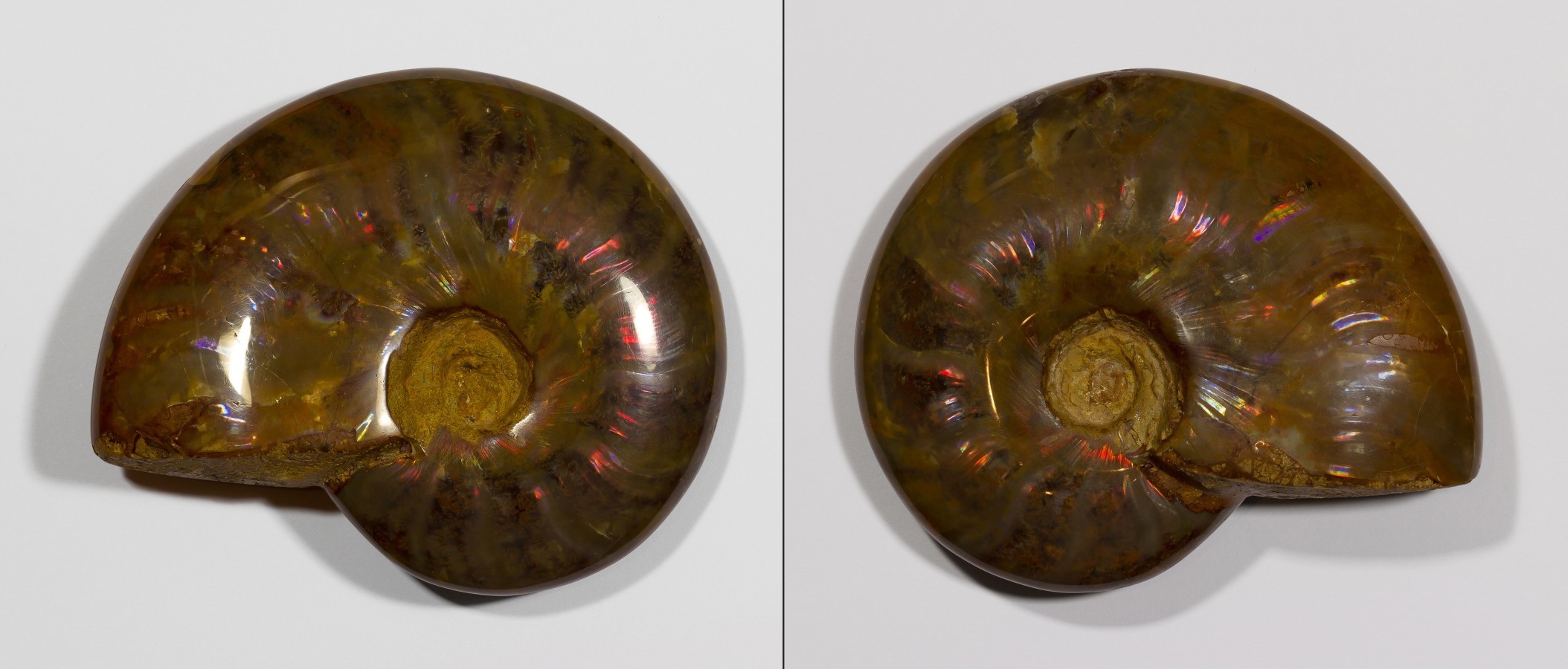 Diese opalisierenden Ammmoniten aus Mitsinjo, Madagaskar interessierten mich wegen der Opaleszenz,