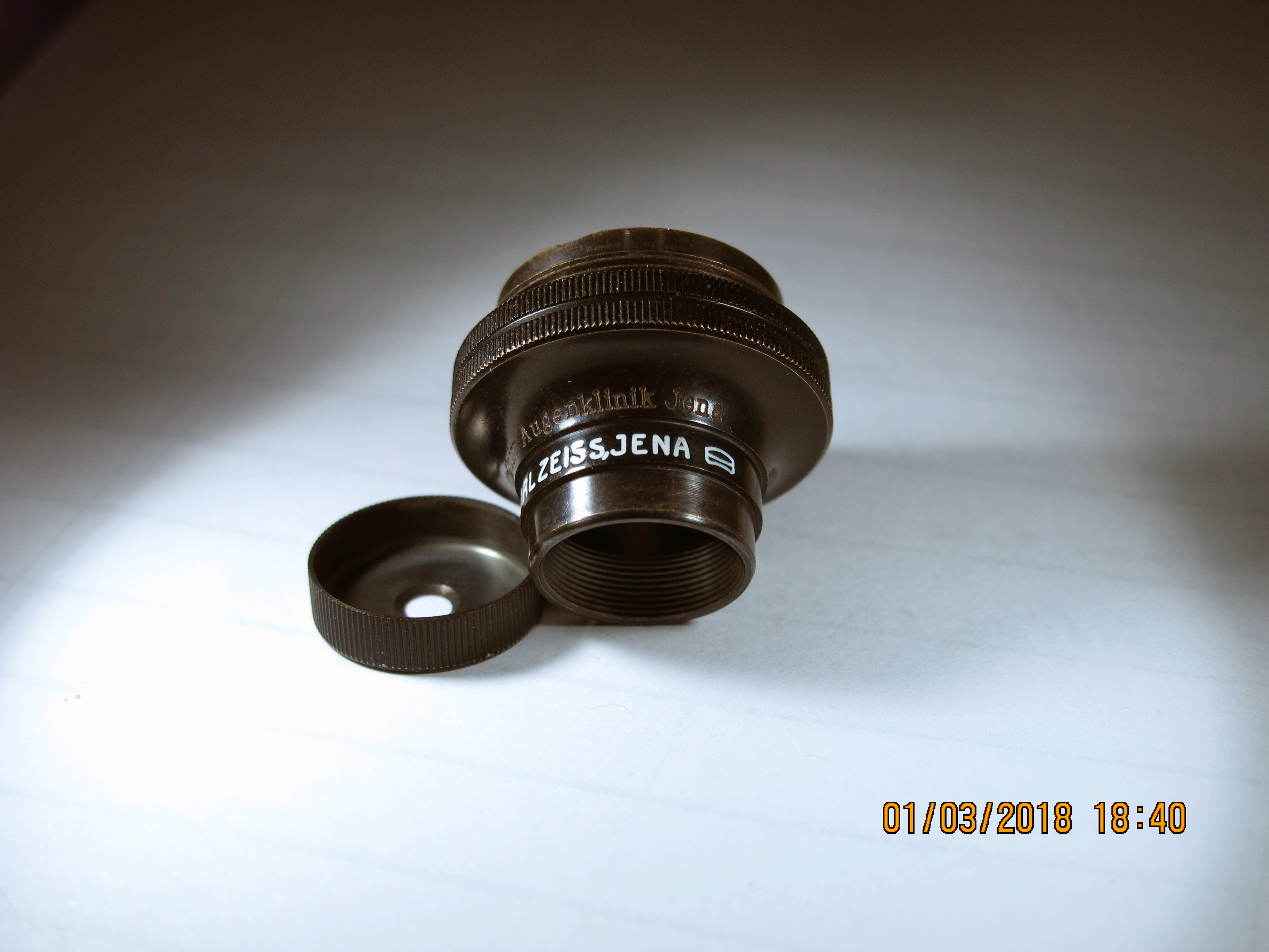 Meine Frage ist nun, aber ob jemand irgendwelche Daten zu dem Lupenobjektiv hat. Es steht nur Carl Zeiss Jena drauf und sonst nur a2 und eine Seriennummer. Es wurde irgendwann mal in einer Augenklinik genutzt, da ein Hinweis eingraviert ist.
