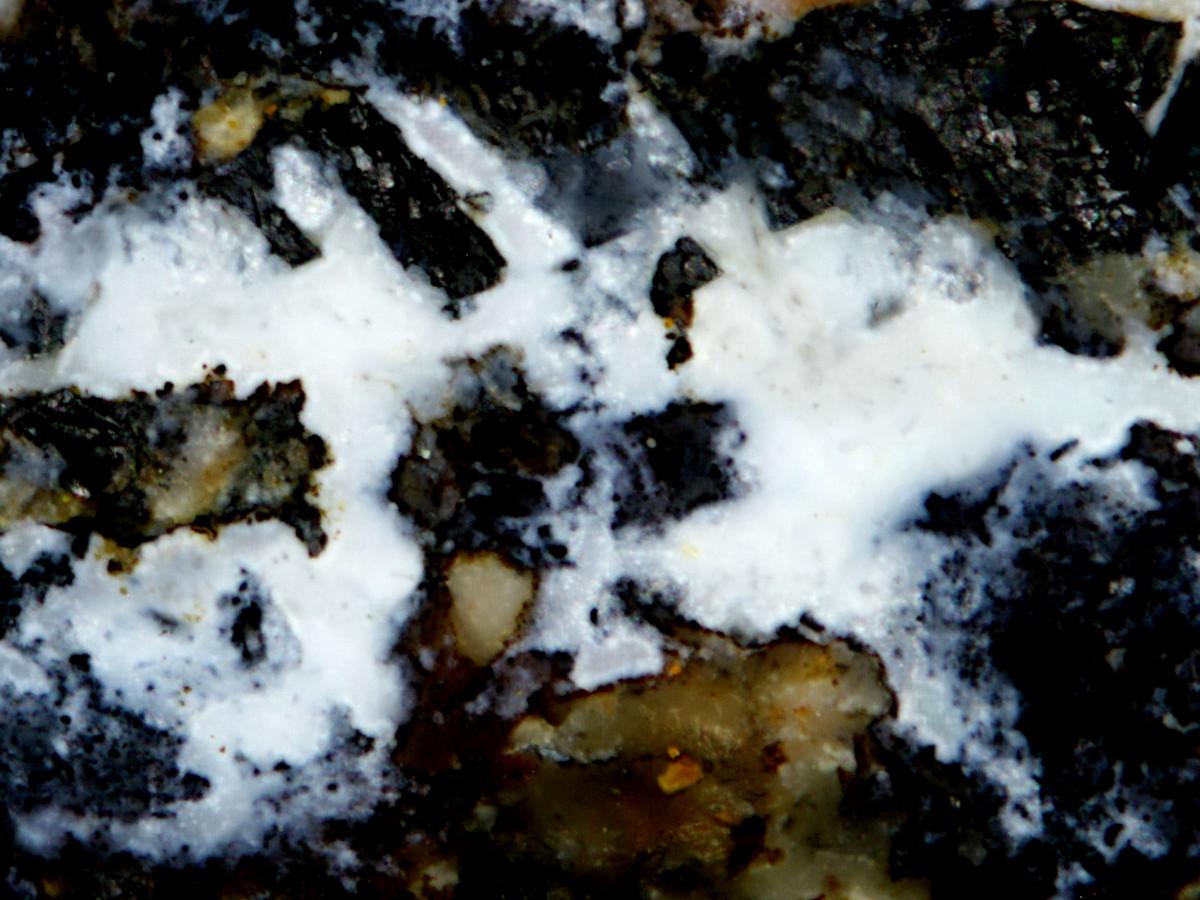 Ich möchte nicht miesepetrig erscheinen, aber die meisten Bilder dieses Einstellers zeigen Farbflächen und keine Mineralbilder. Bildgrößen von unter 1 mm mögen dem Fotografen schmeicheln, dann muss es aber auch einen Wert haben. Dieses Bild ist nur exemplarisch und kann alles mögliche zeigen, Sinter auf Manganoxyden etc. Es ist schlicht und ergreifend nicht auszumachen.