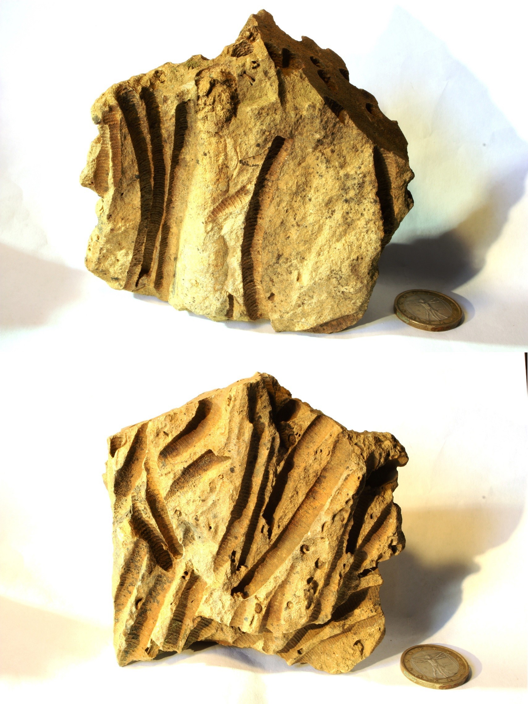 m. E. vmtl. keine Korallen, sondern eher Abdrücke von Crinoidenstielen
