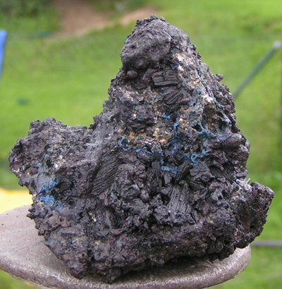 was auf dem Bild zu sehen ist, ist eine Luppe, sicherlich aus einem modernen Rennofenversuch. Da darin viel Eisen enthalten ist, ist sie ziemlich schwer.