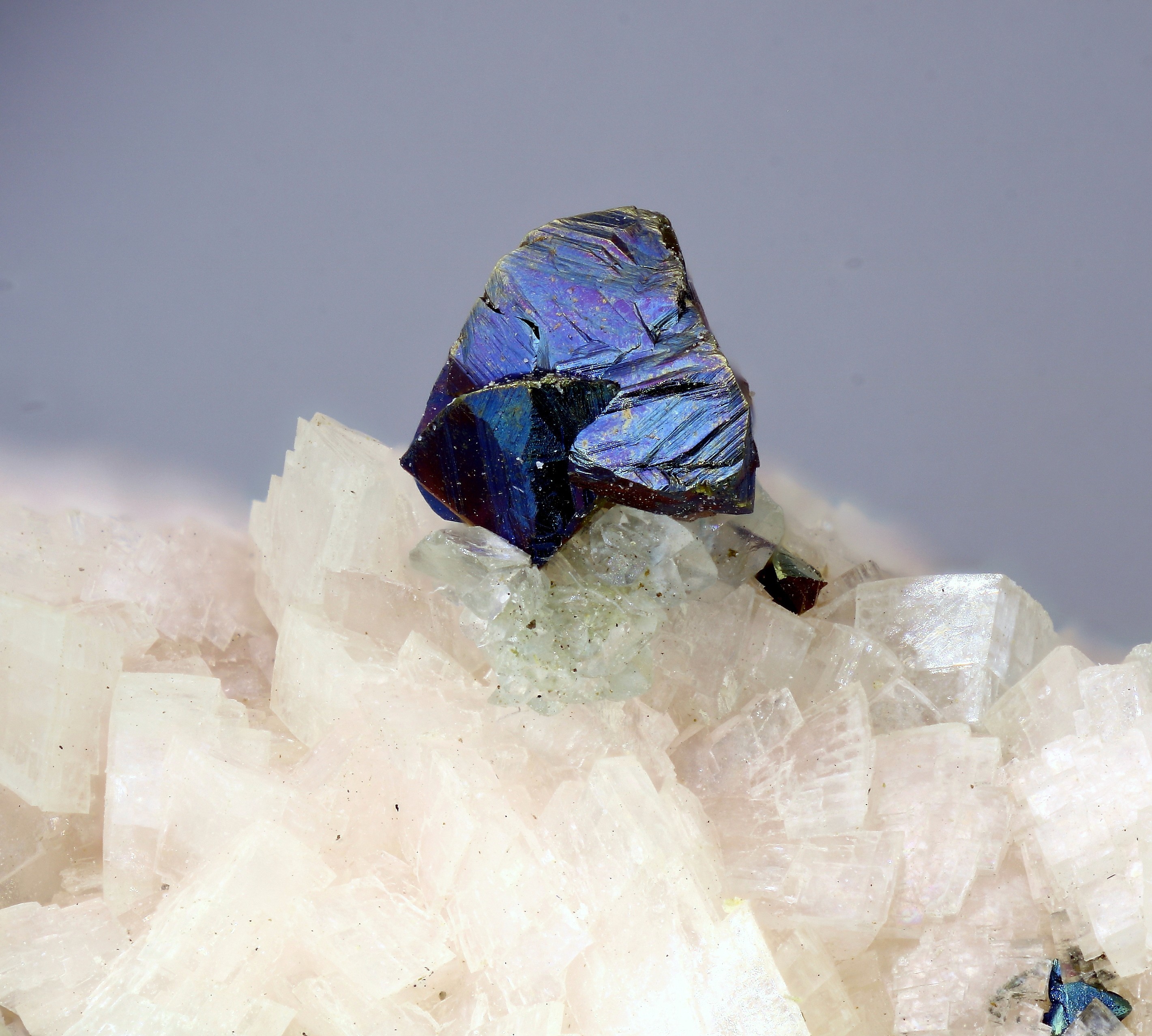 Kupferkies ist klar. Ich sehe darunter allerdings sowohl Calcit (leicht grünstichtig direkt unter dem Kupferkies) und Dolomit als großflächigen Kristallrasen.