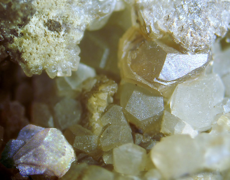 Das ist zweifelsfrei Calcit, aber seit wann sind das rhomboedrische Kristalle? Ich sehe das trigonale Prisma (100-Flächen) und die entsprechenden 101-Flächen.