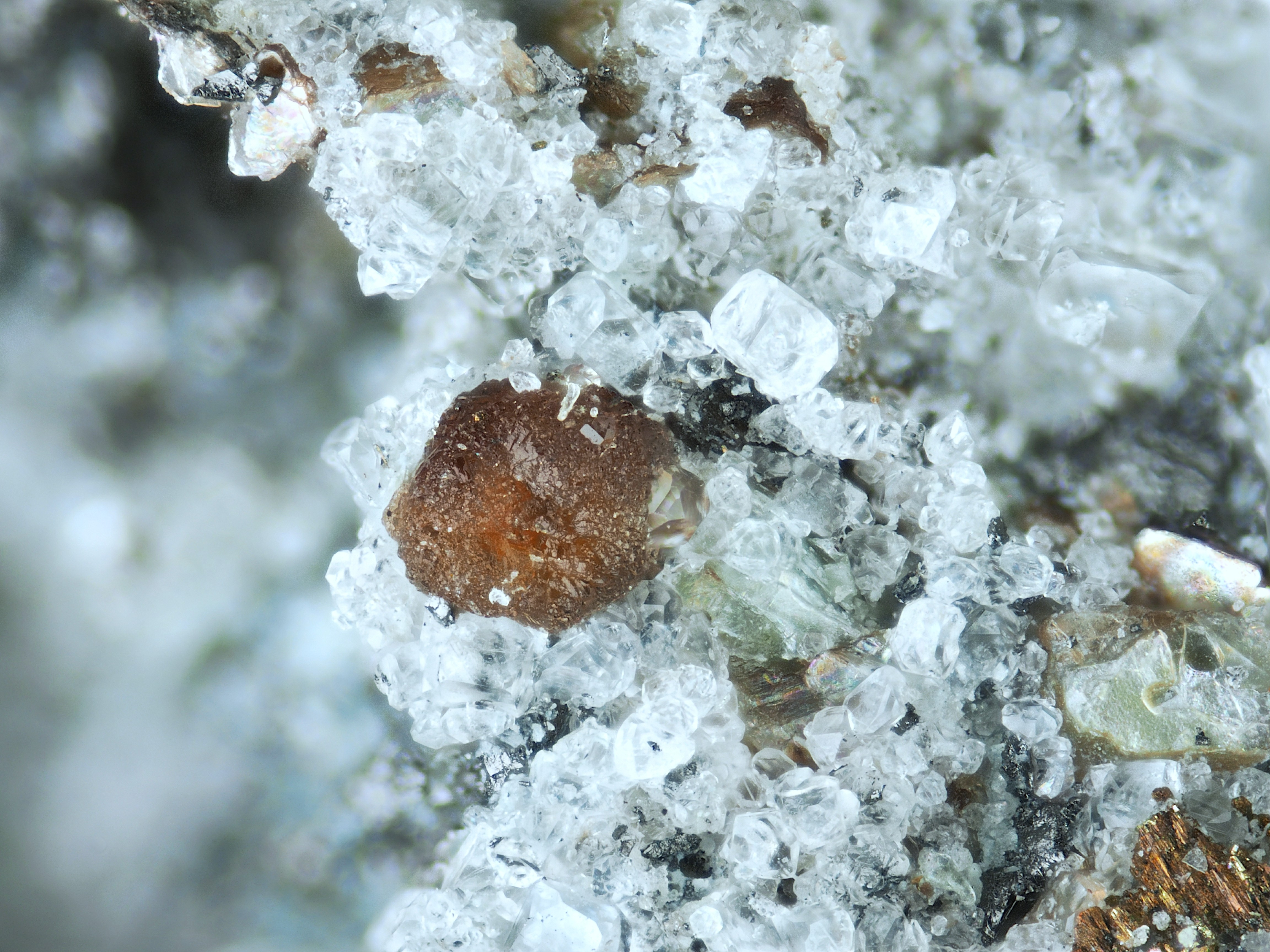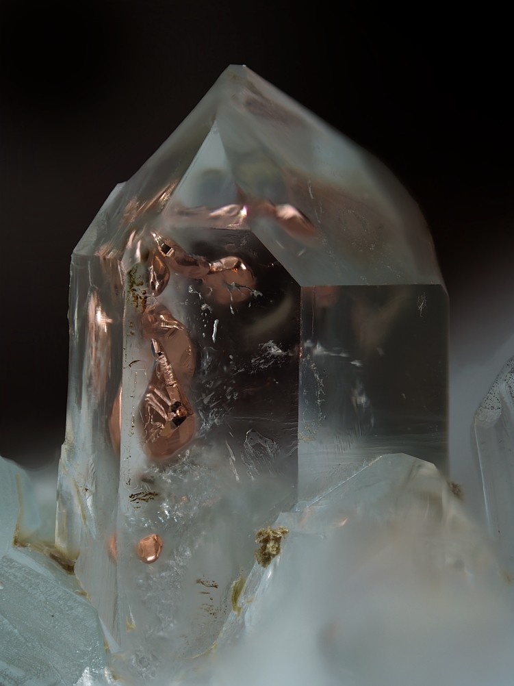 Ein Miniature von der Mohawk Mine (4.-€) mit Kupfer und Quarz zeigte nach dem Freipräparieren exzellente Kupferkristalle als Einschlüsse in einem kleinen, klaren Bergkristall. Kupfer ist in Quarz ein sehr seltenes Einschlussmineral - in dieser Qualität kenne ich keine gleichwertige Stufe.