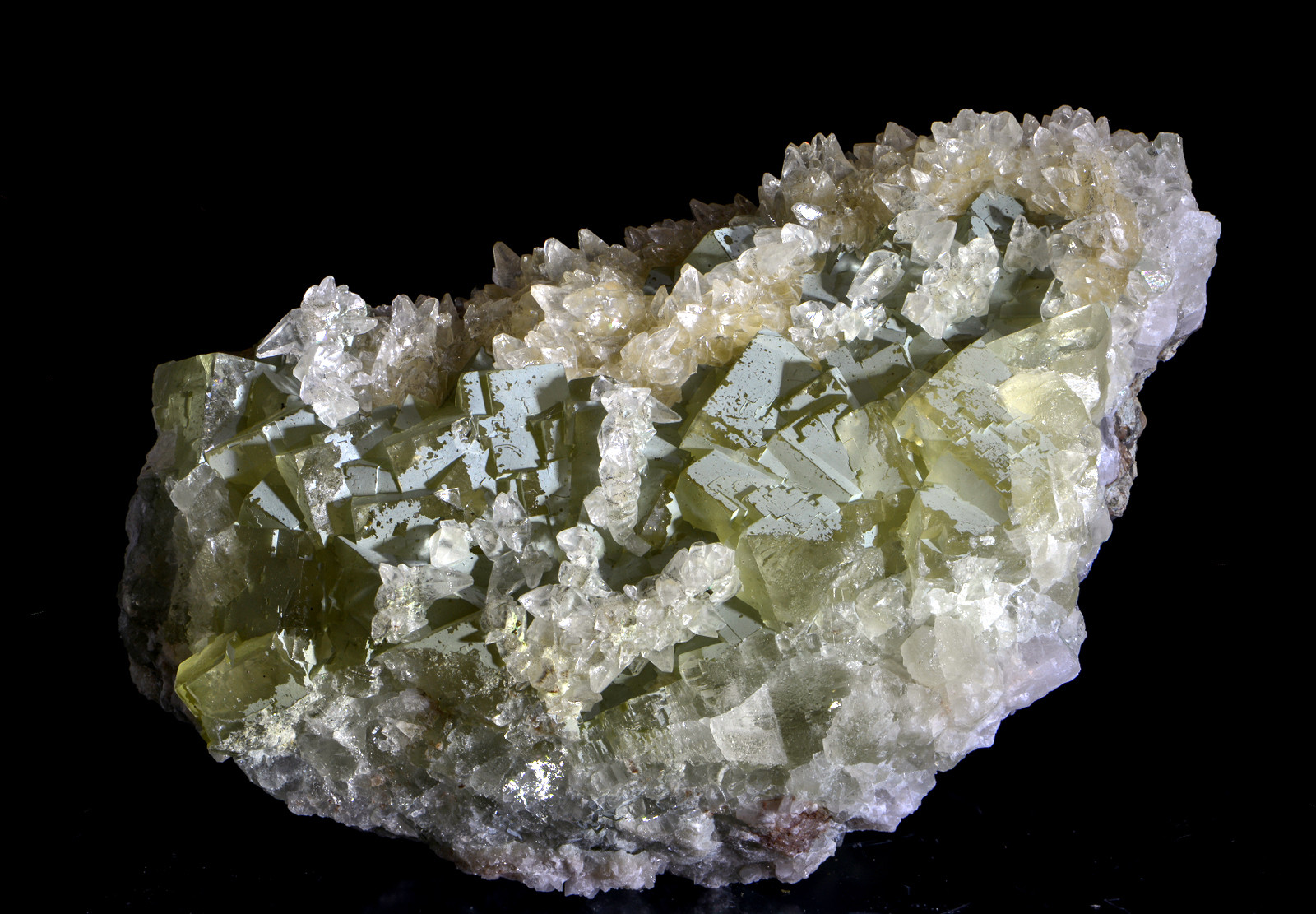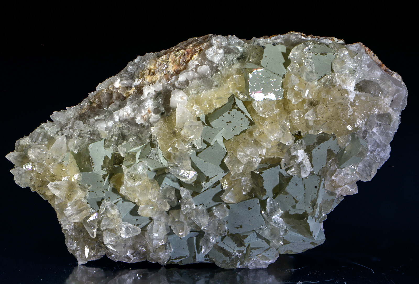 Danke Markus, da liegt ja das Problem, zu dünn um ein Plättchen zu untersuchen. Calcit schließe ich tendenziell aus, sonst hätten doch die nachträglich gewachsenen Kristalle auch dort Fuss gefasst. Quarz... tendenziell auch nicht (keine erkennbare Struktur). Ich denke, dass es irgend ein Tonmineral ist, allenfalls gebunden.