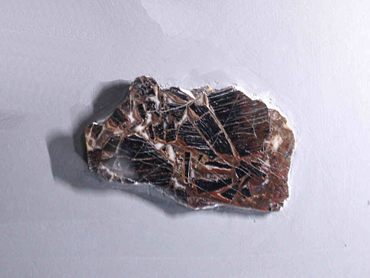 Das dürfe mehr eine Achatbrekzie mit Pseudomorphosen sein. Die Achatbänder, wenn überhaupt ersichtlich, sind durchgängig ohne erkennbarer Bruchzonen. Auch in der Originalgröße (unscharf) wird es nicht besser.