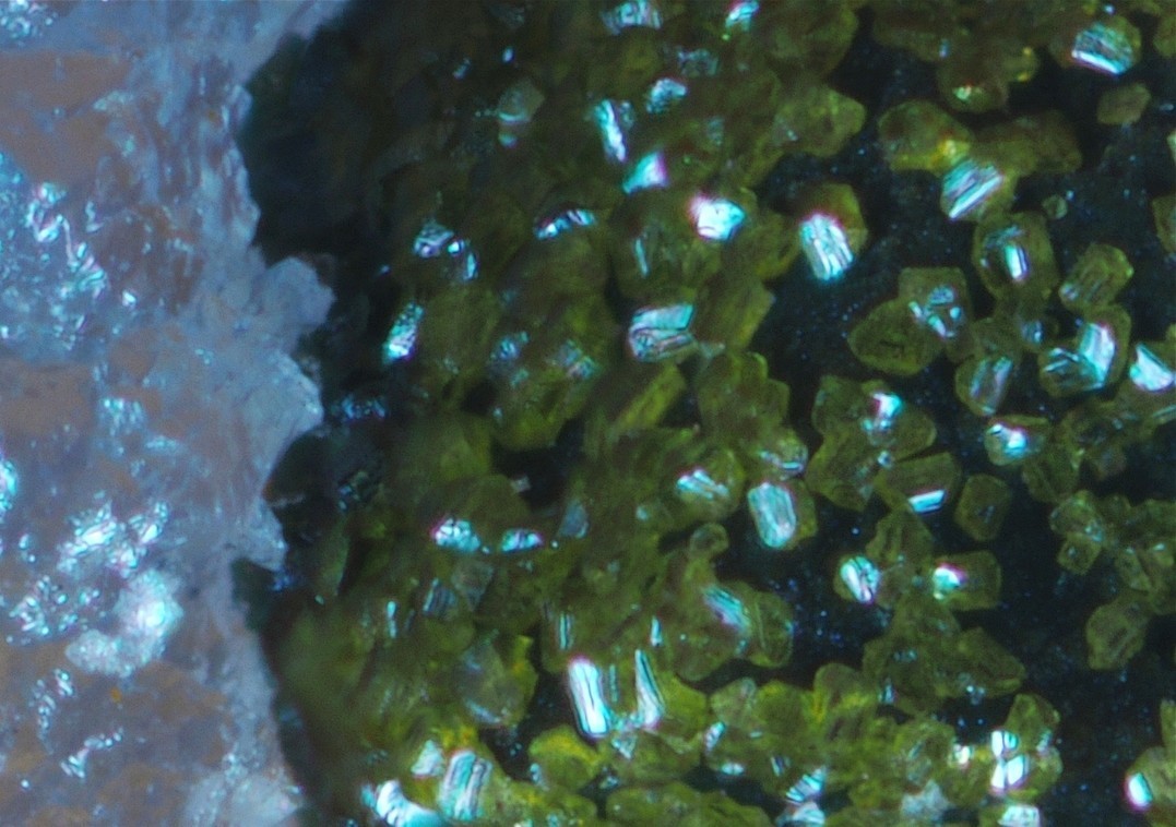 Ein weiteres Fragezeichen findet sich in meiner Clara-Sammlung. Könnte es sich bei den grünen Kriställchen um Beudantit handeln ?