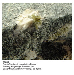 mich würdel interessieren, wo bei diesem Foto der Titanit steckt. Meines Wissens hat der Titanit vom Buchberg eine braune bzw. orange Farbe. Das grüne Mineral ist mit Sicherheit Epidot.