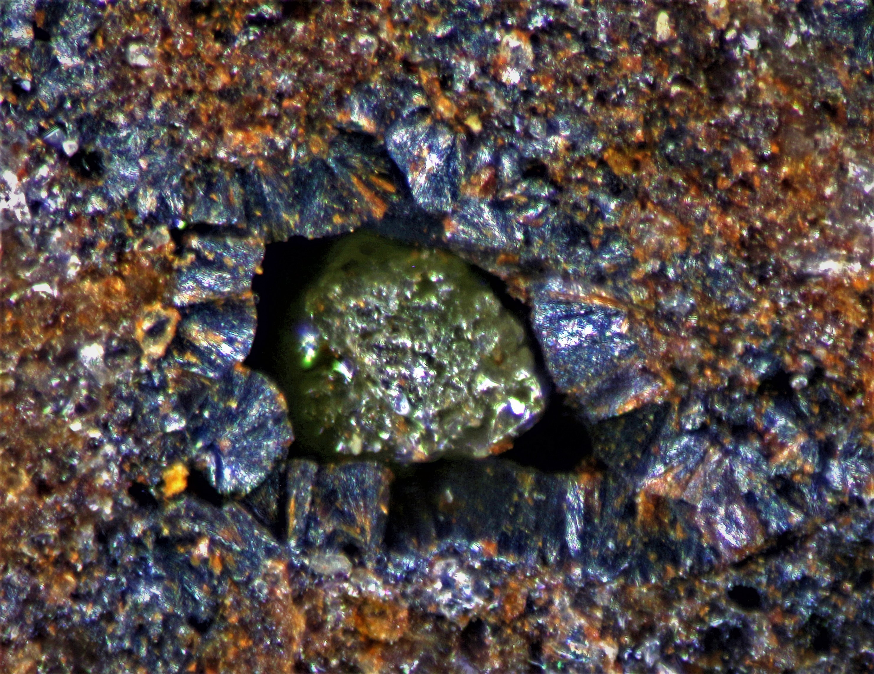Ob er im Goethit Hohlraum kristallisiert, ist sicher nicht sicher? Er könnte auch mechanisch dort hingelangen!