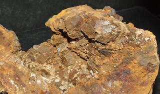 Nach Aufzoomen lassen lässt sich mittig eine Schaar von beige farbenen Kristallen erkennen, die Andradit sein könnten, ebenso gut aber auch der in der Beschreibung erwähnte Calcit, mehr lässt die Bildauflösung nicht zu.