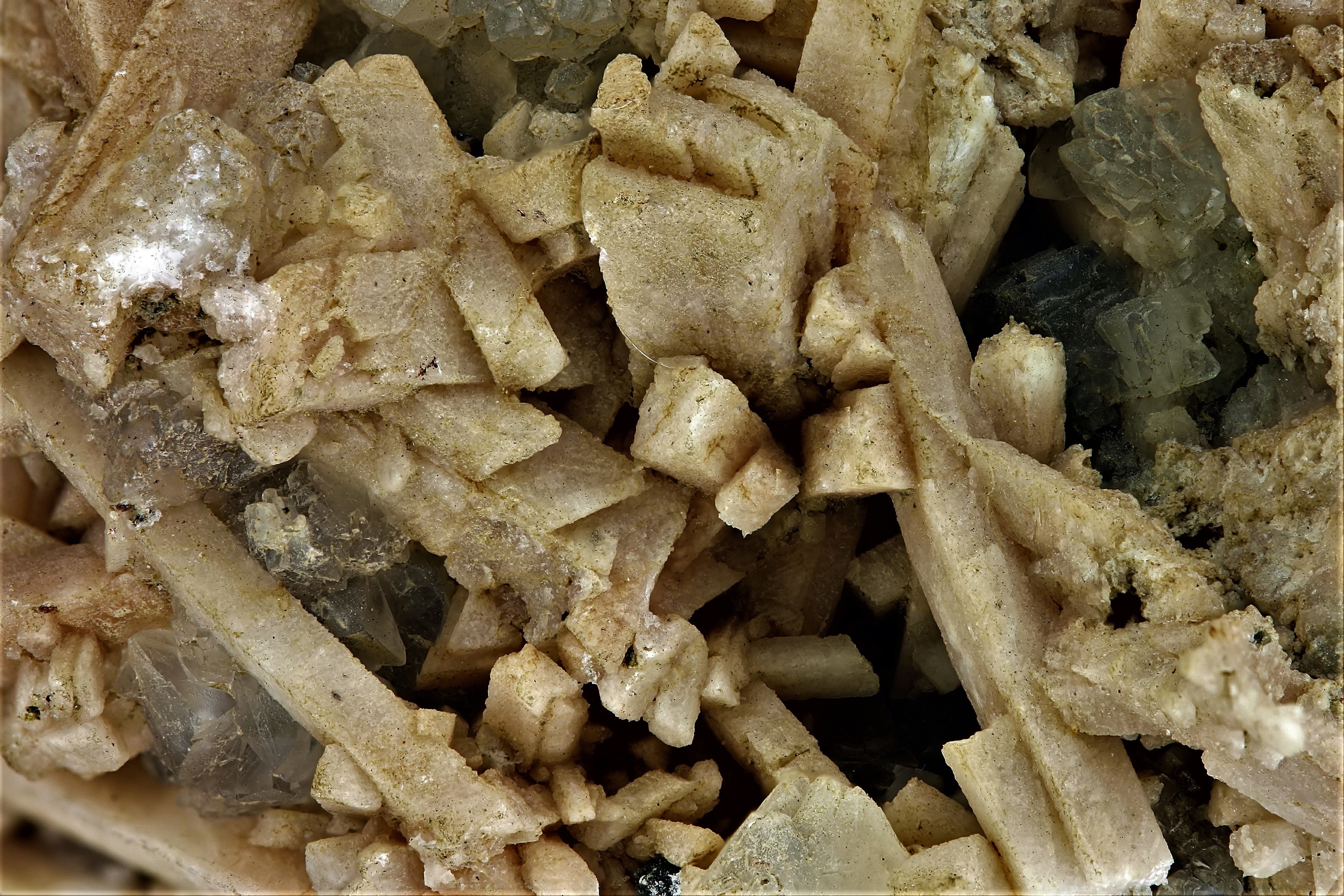 Dies dürften die bekannten Pseudomorphosen von Feldspat nach Laumontit von diesem Fundort sein. Heulandit kann ich nicht erkennen.