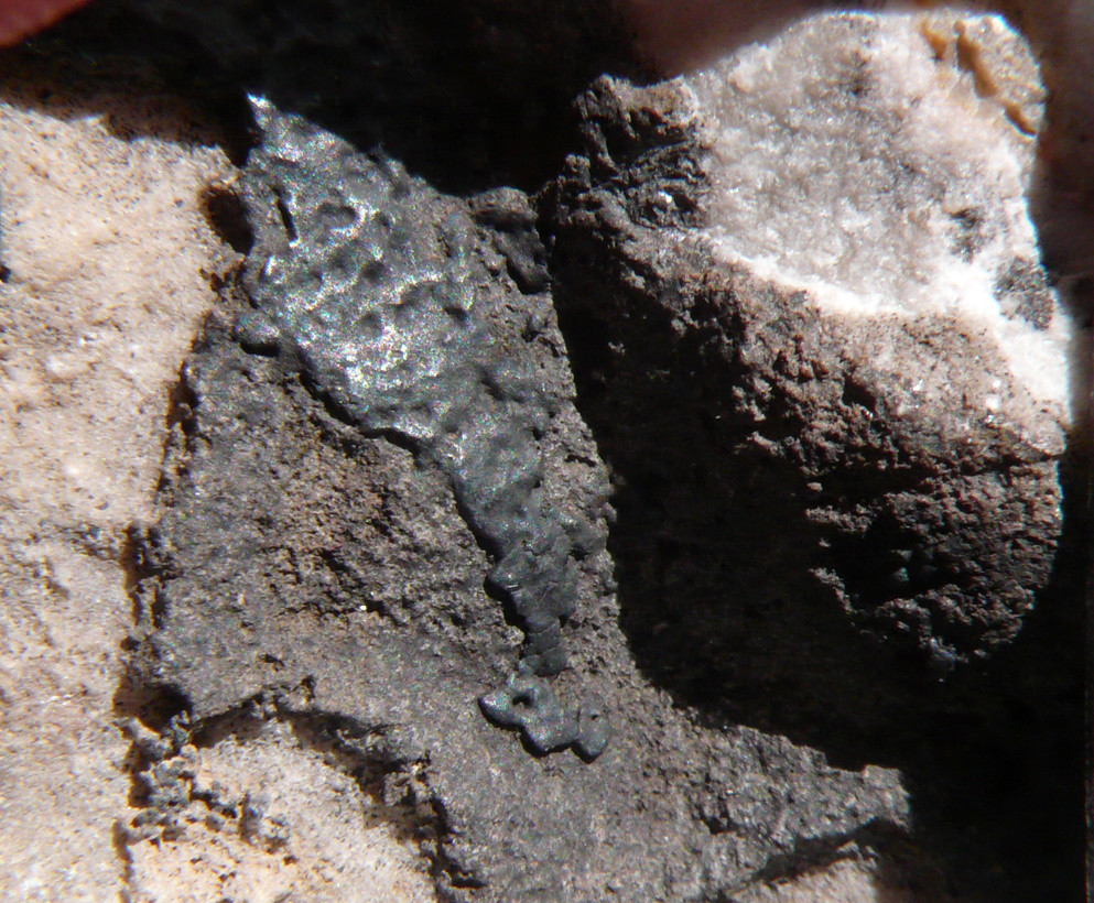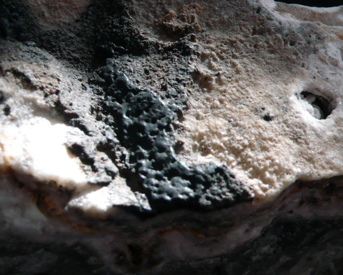 und nochmal die dunkle Kruste mit der metallisch glänzenden Oberfläche im Detail, sowie eines der "sinterartigen" Oberfläche: