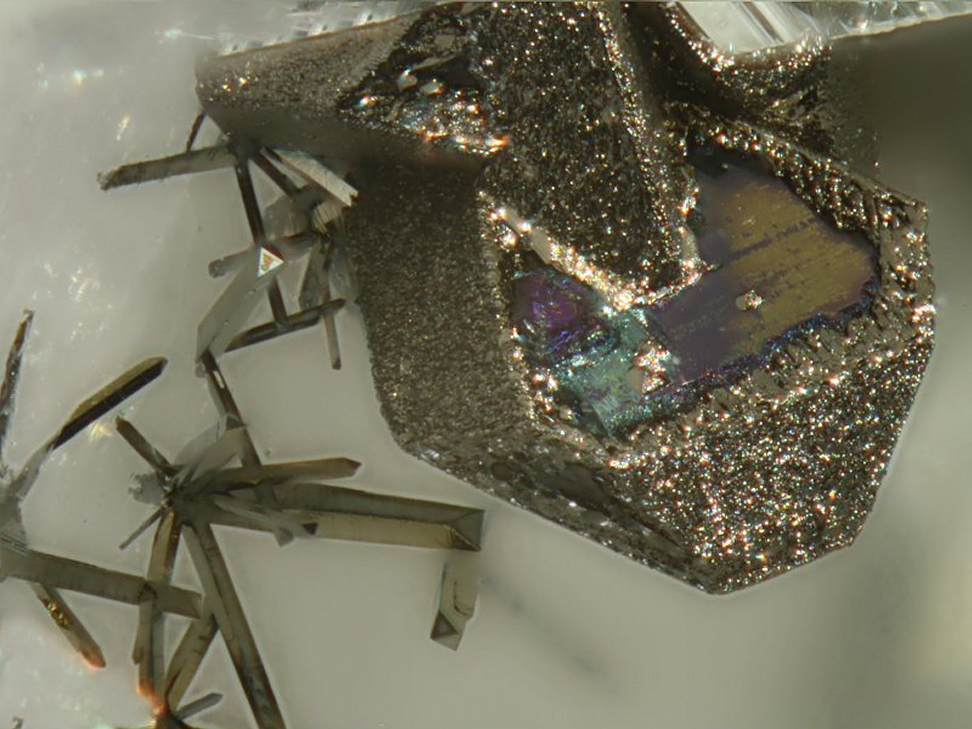 sitzen auf einem Arsenopyrit. Die linken xx sind Arsenopyrit
