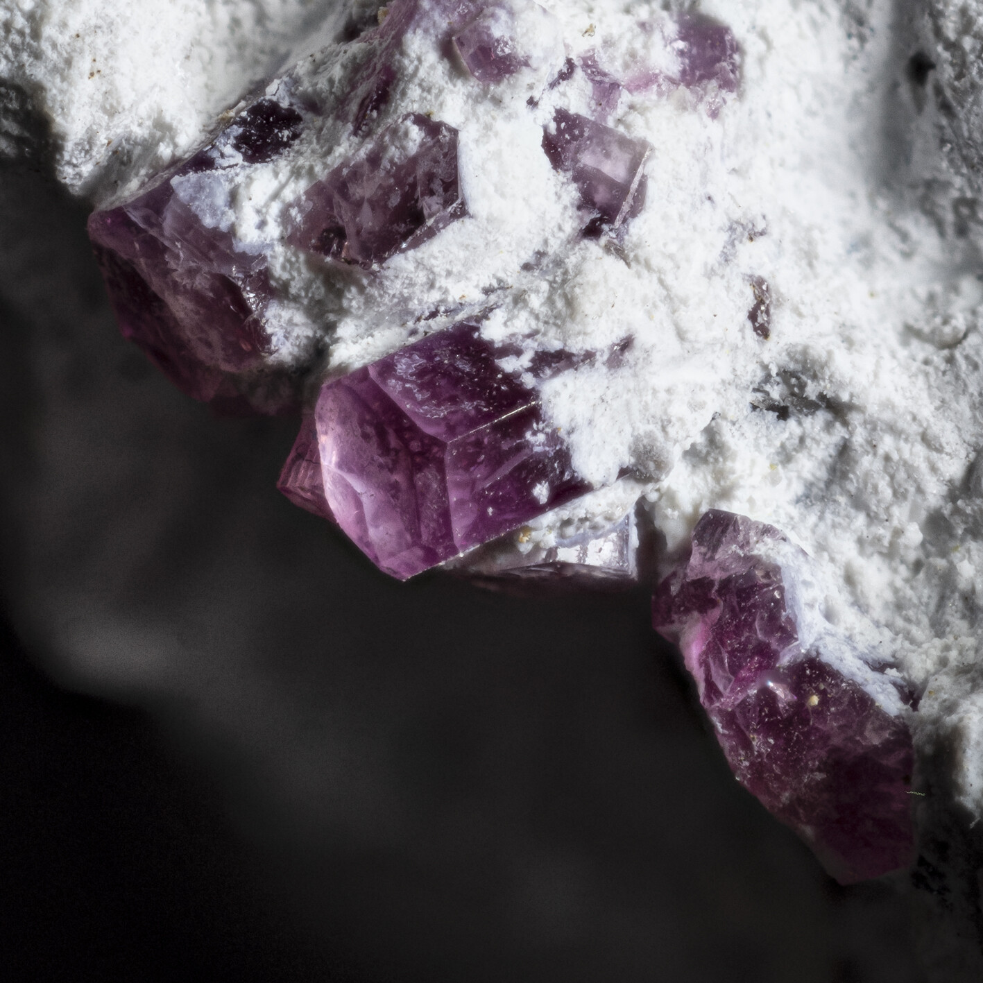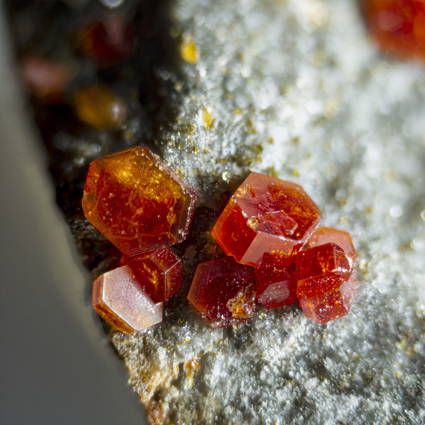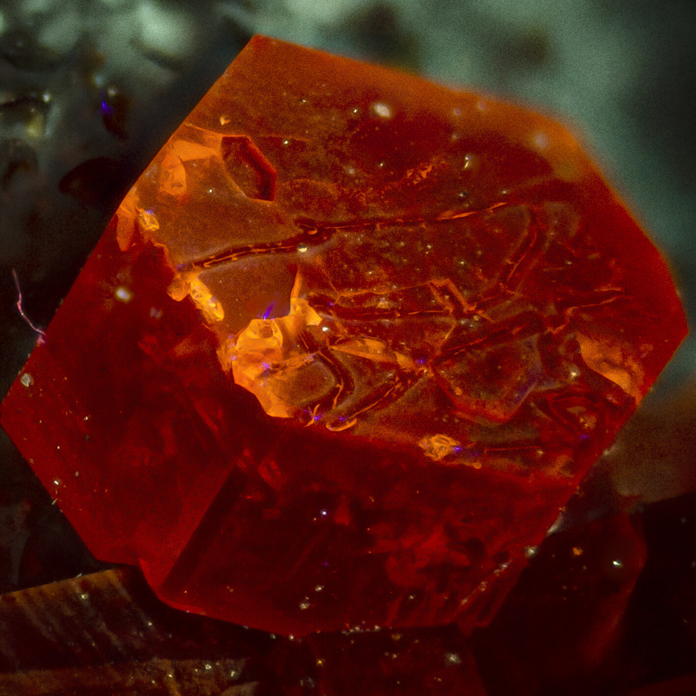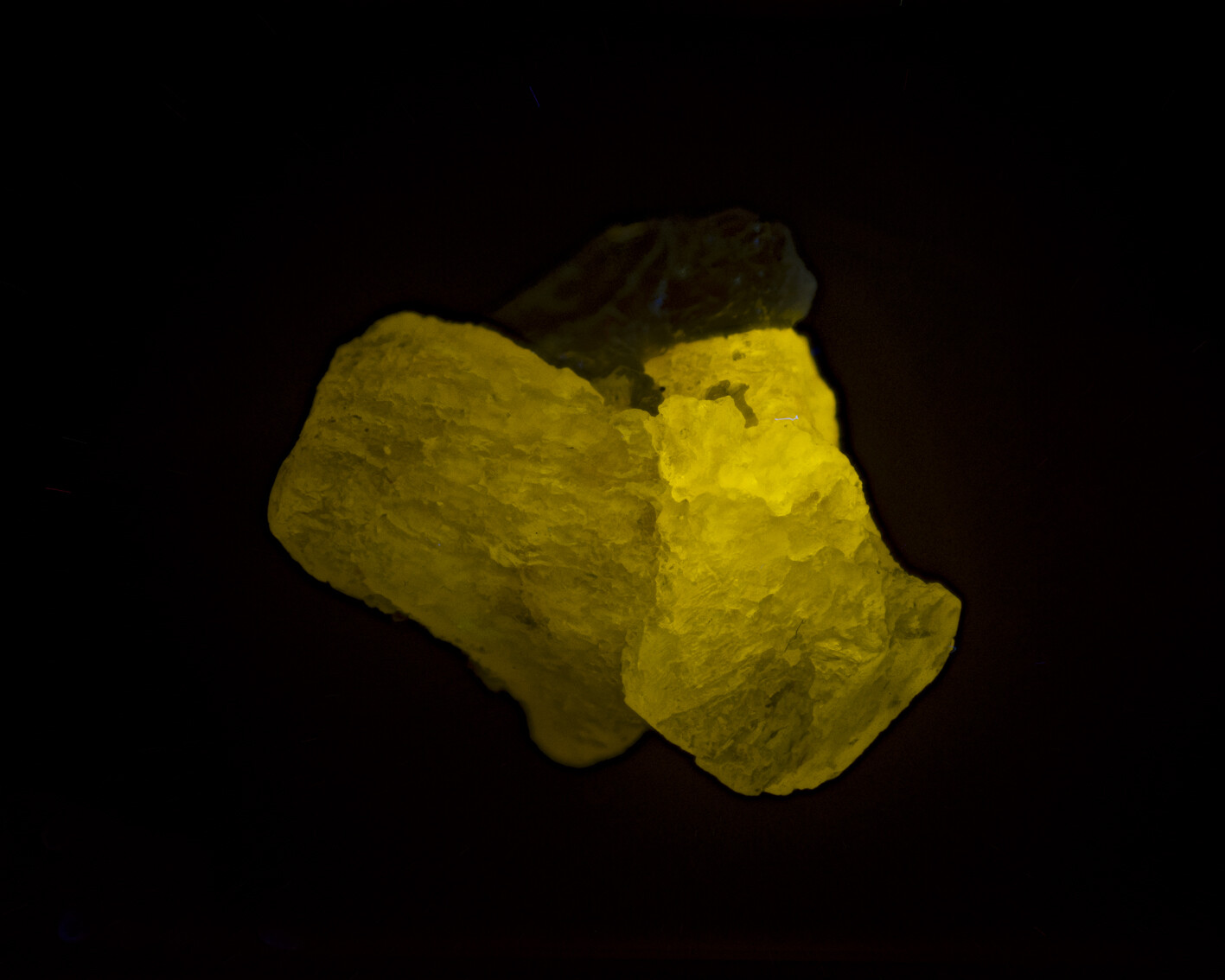Für mich war das eine sehr erstaunliche Entdeckung! Alle meine Topase von den Eifel-Fundstellen leuchten intensiv rot - bei Beleuchtung mit 405 nm bzw 450nm. Bei 365 nm Anregung hingegen leuchten sie kaum, unter 255 nm dann - weiss!