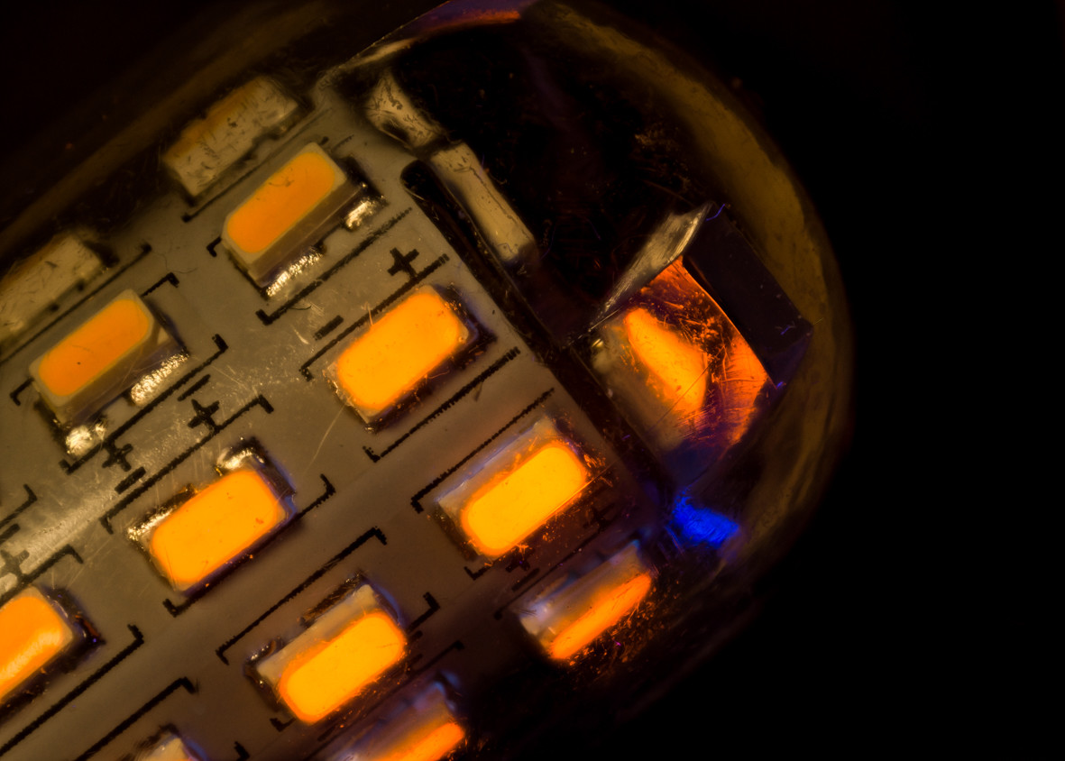 Da die breite Emission bei 450 nm einen weiten (aber deutlich niedrigeren) Ausläufer bis oberhalb von 650 nm hat, entspricht der gesamte Farbeindruck dann einem leicht grünlichen Gelbton (1a,b).